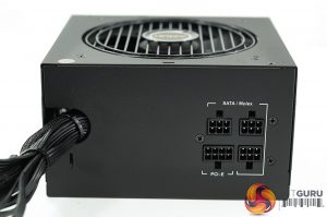 As a semi modular unit there is only a small 2×2 modular connector bay at the side. There is one 4x connector for a PCIe cable, and the other three 3×3 port connectors are for the SATA and Molex cables.