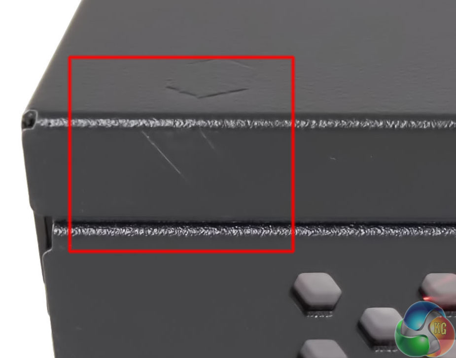 The unit didn't pass our ‘screwdriver' test. This involves running the head of a Philips head driver down the side of the chassis with light to medium force. After all, how many times have you accidentally connected with a power supply during a system build?