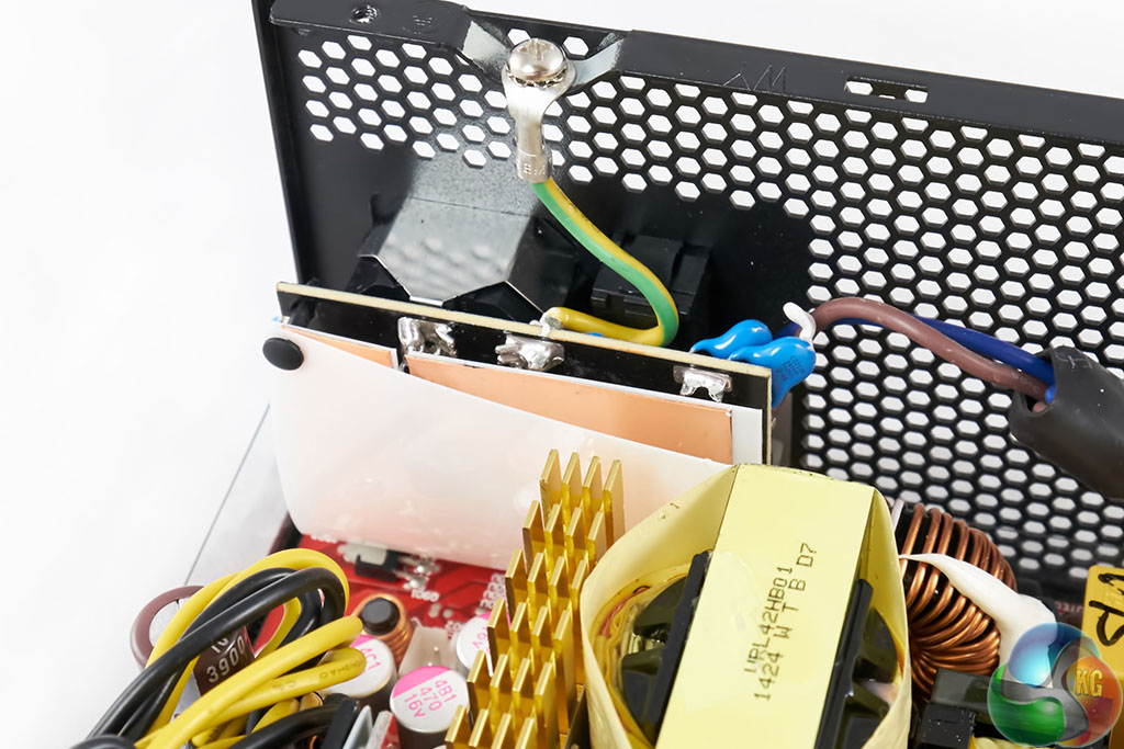 The filtering stage starts with a coil, alongside X and Y Capacitors – it continues onto the main PCB.