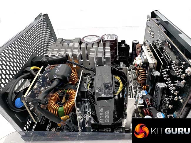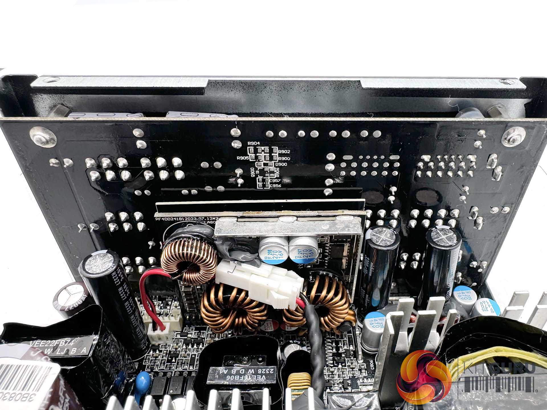 This is a full bridge topology design based on the Seasonic Vertex PX Platinum platform. This specific unit is similar to the VERTEX PX ATX 3.0, with the primary difference being the new 12V-2×6 connector/cable. An LLC resonant converter is adopted for lossless switching and improved efficiency levels. The 12V powers a pair of DC-DC converters to generate the minor rails. The power supply is well designed, to be able to allow air to flow through the components. Heatsinks are quite small, but due to the high rated levels of Platinum efficiency there should be no concerns.