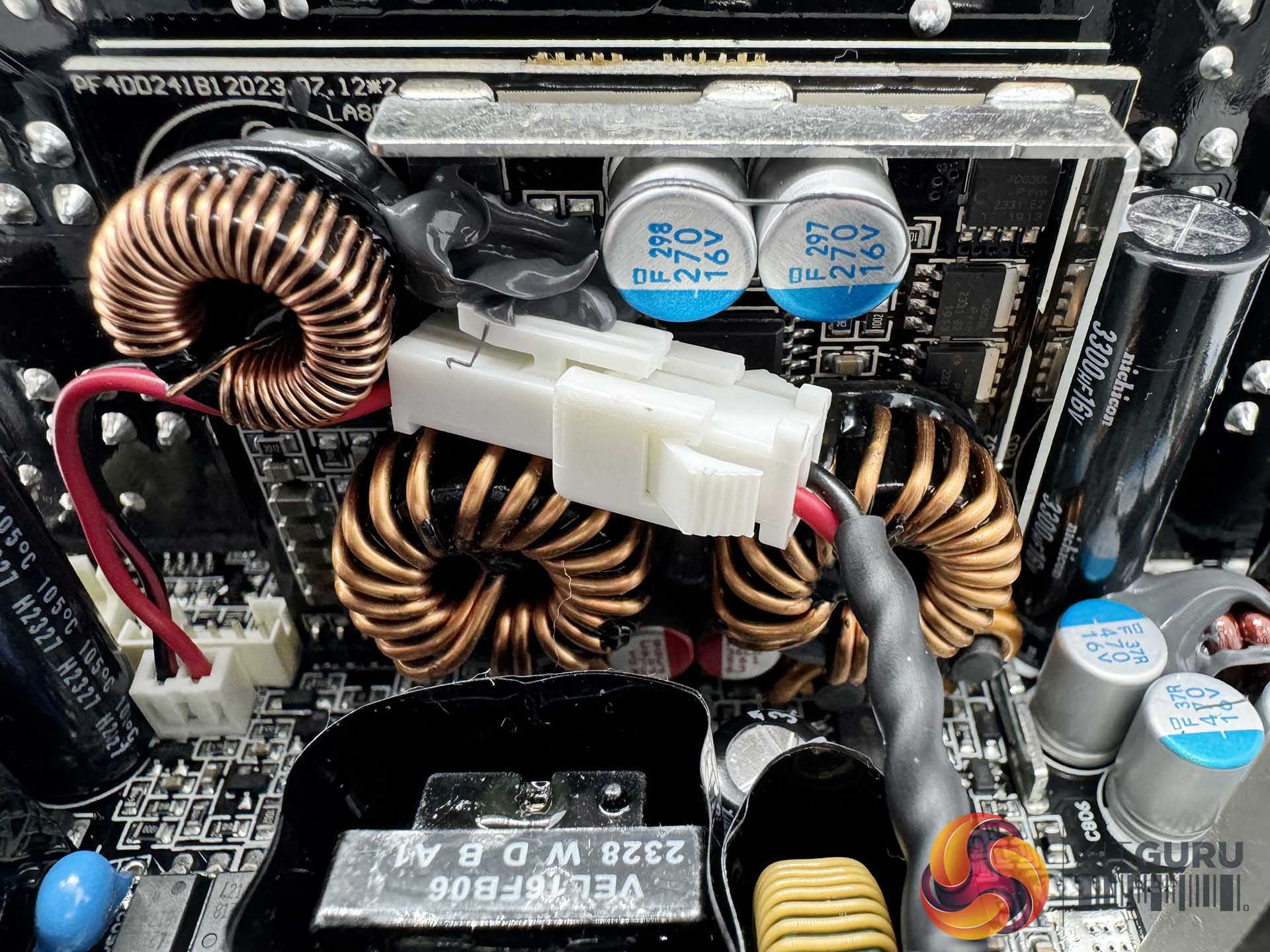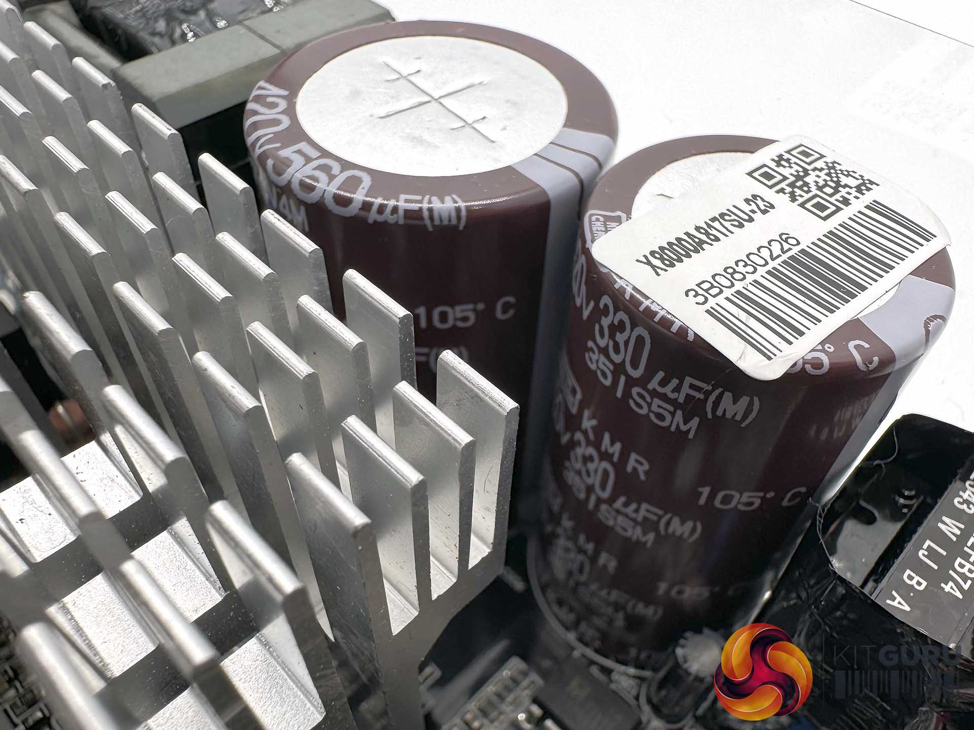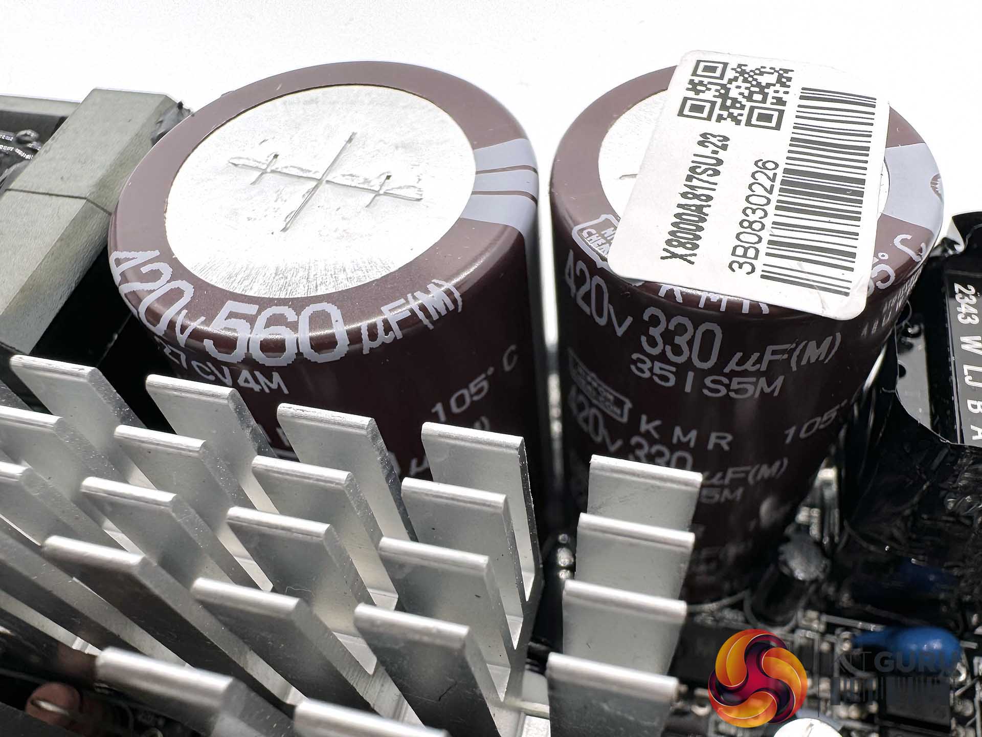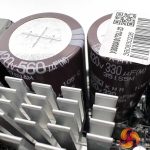 This unit is populated with quality 105c rated Japanese capacitors from Rubycon, Nippon Chemi Con and Nichicon. The two primary Nippon Chemi Con capacitors are rated 330uF and 560uF to produce a total of 890uF. Seasonic have adopted an array of polymer and electrolytic capacitors on the modular PCB to help with ripple suppression.