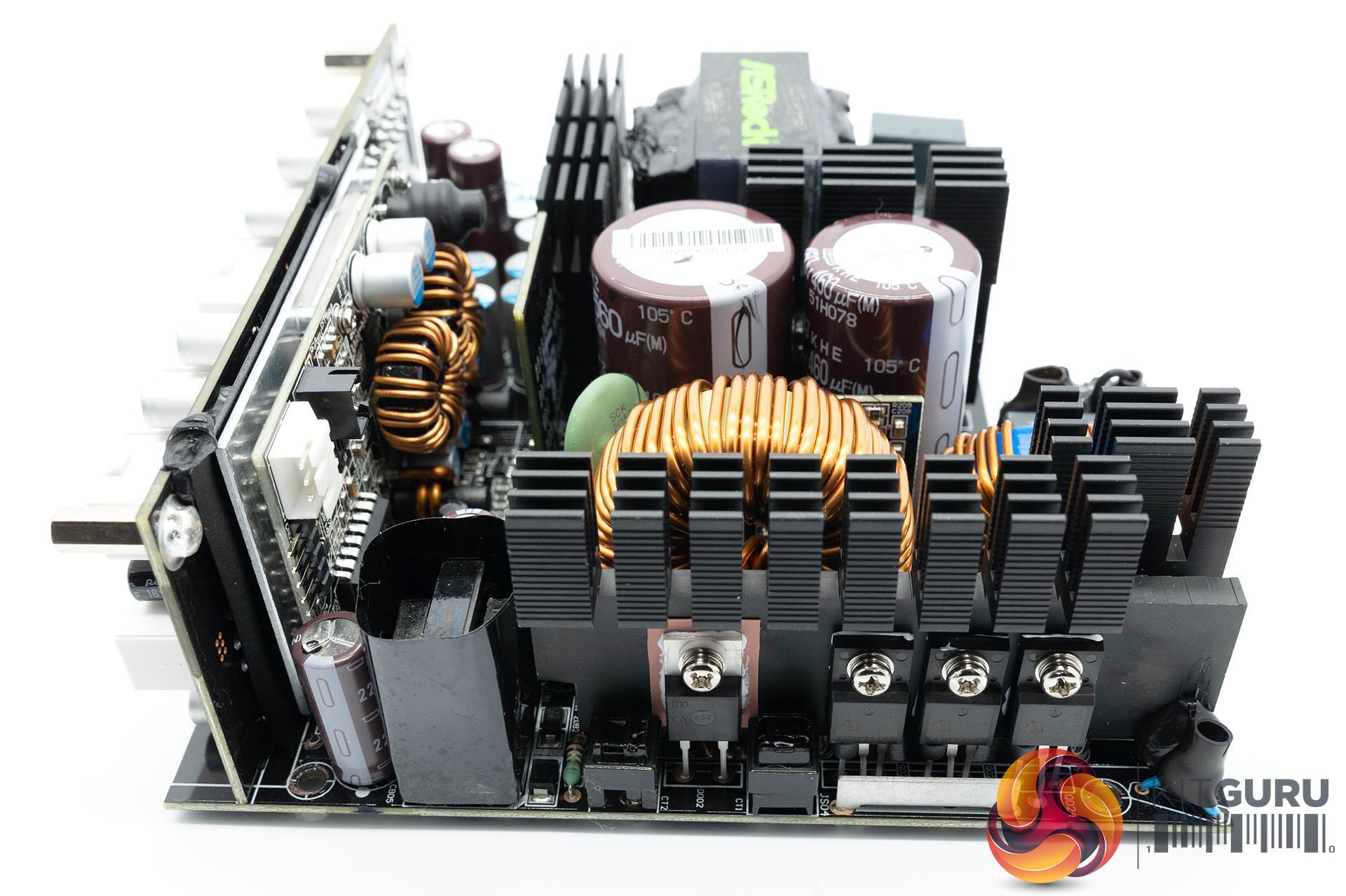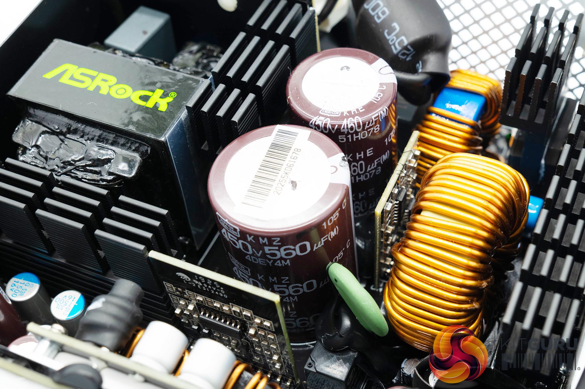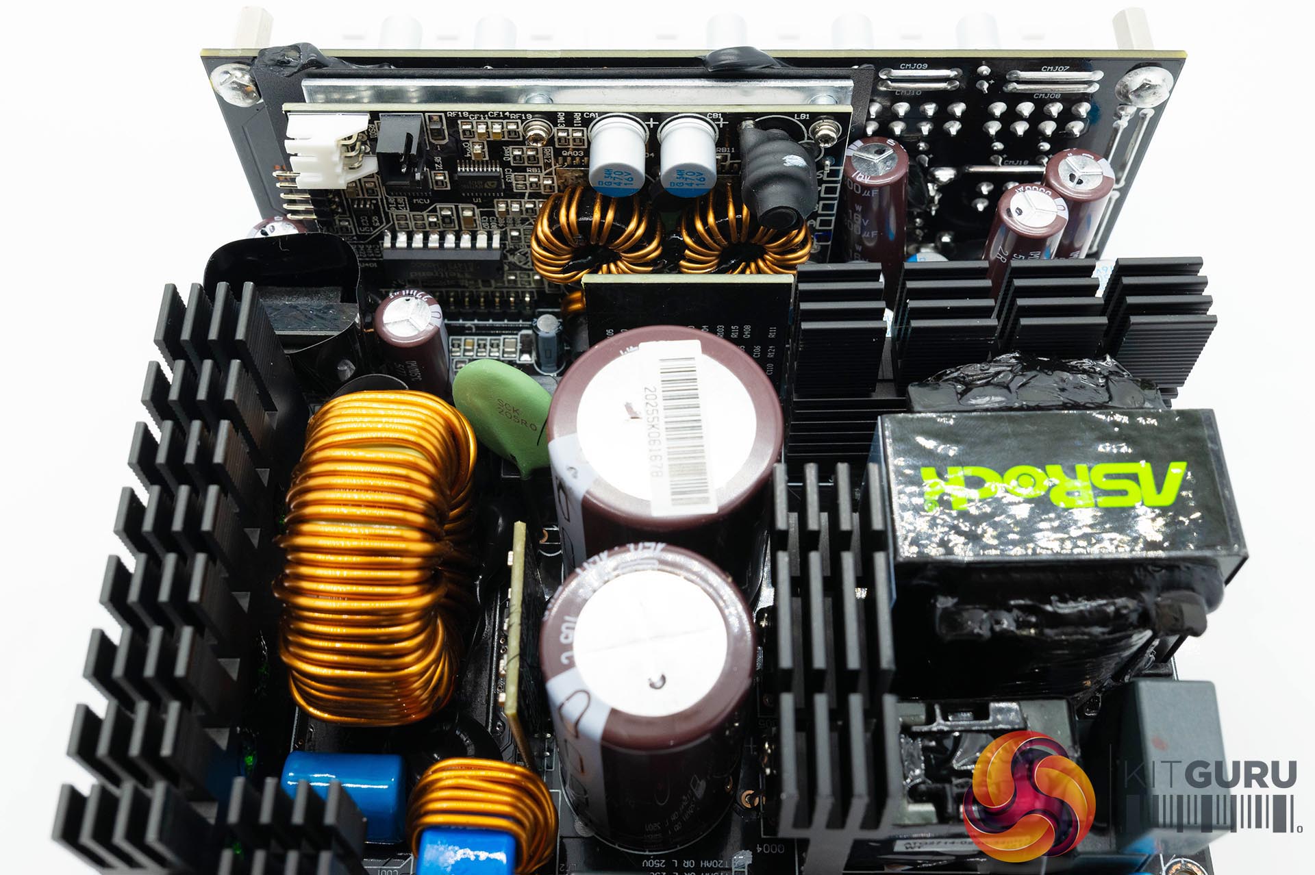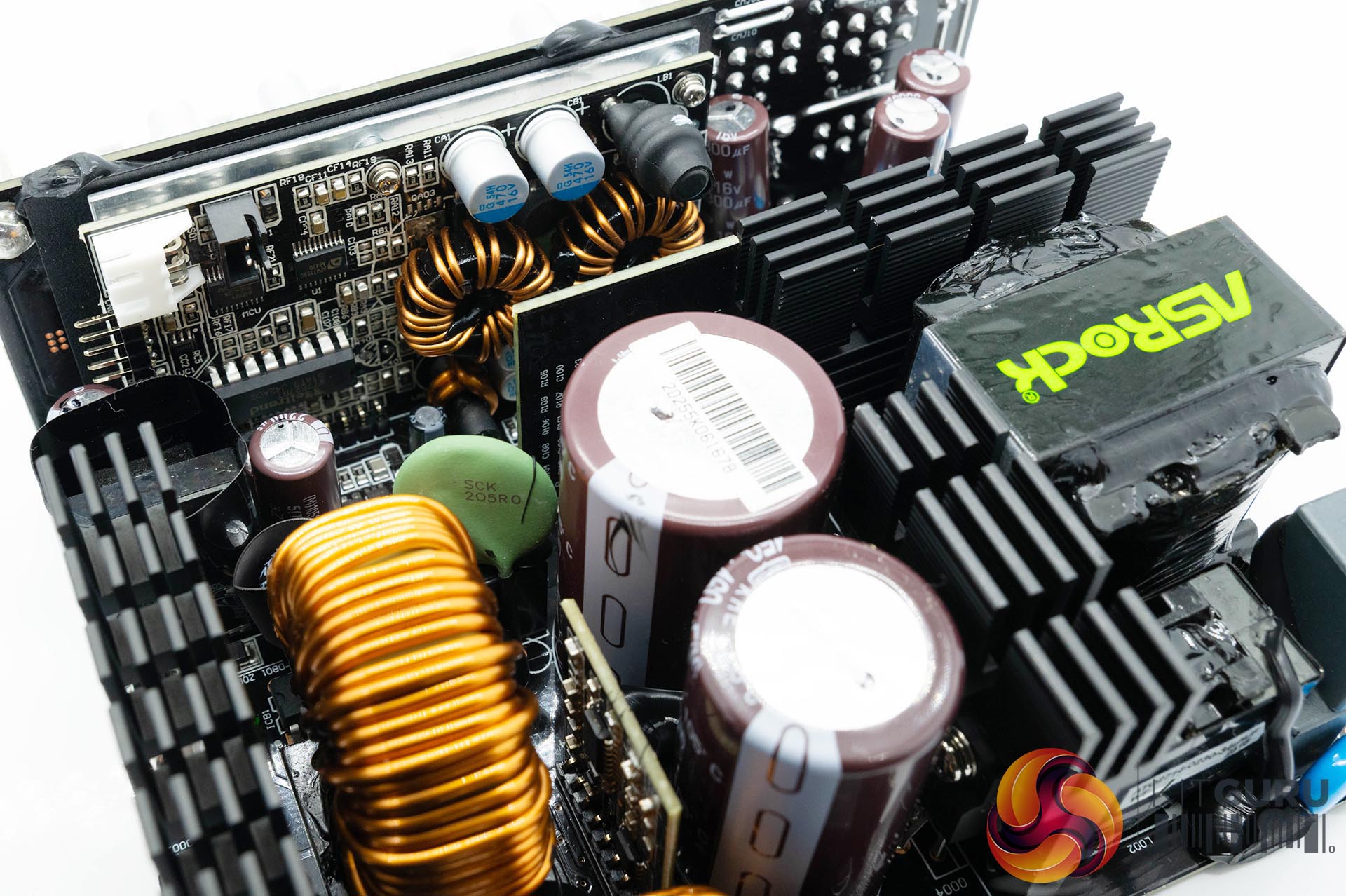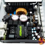 As we mentioned earlier in the review ASRock told us that they are partnered with HEC/Compucase for the design of this power supply, a company that has been around now for a very long time in the industry. The design of this unit is a half bridge LLC topology and incorporates four X capacitors, four Y capacitors and two filtering inductors. There are some rectifying bridges mounted on small heatsinks as well. Soldering quality throughout is pretty good, across the main PCB and daughtercards.