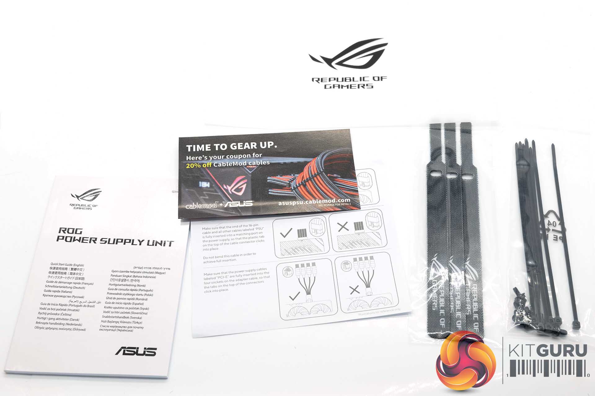 The ASUS bundle is comprehensive. You get a variety of cable ties, both plastic and felt, and our sample included several power cables for Europe and the United Kingdom.