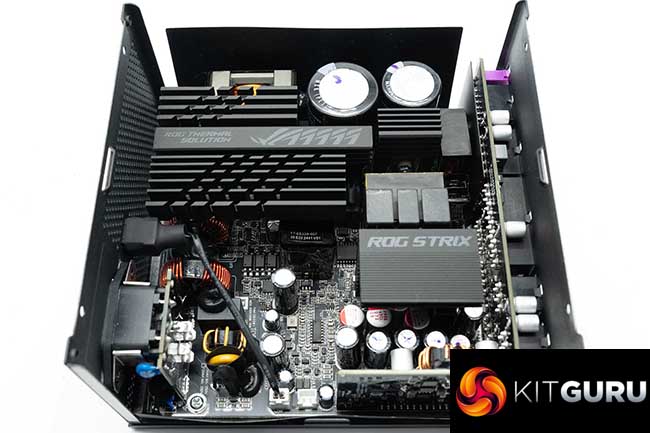 On a technical level this Great Wall design is more than capable. The internal component selection (such as high grade Japanese Rubycon and Nichicon capacitors) is first class, and soldering quality on the main PCB and other components is excellent. I didn't completely disassemble the power supply as ASUS want to collect this unit – but from what I can see, there are no obvious concerns with the design. I also appreciated the excellent ROG heatsink designs which aid cooling throughout, ensuring that the 0dBa operation can be extended for a quieter experience.
