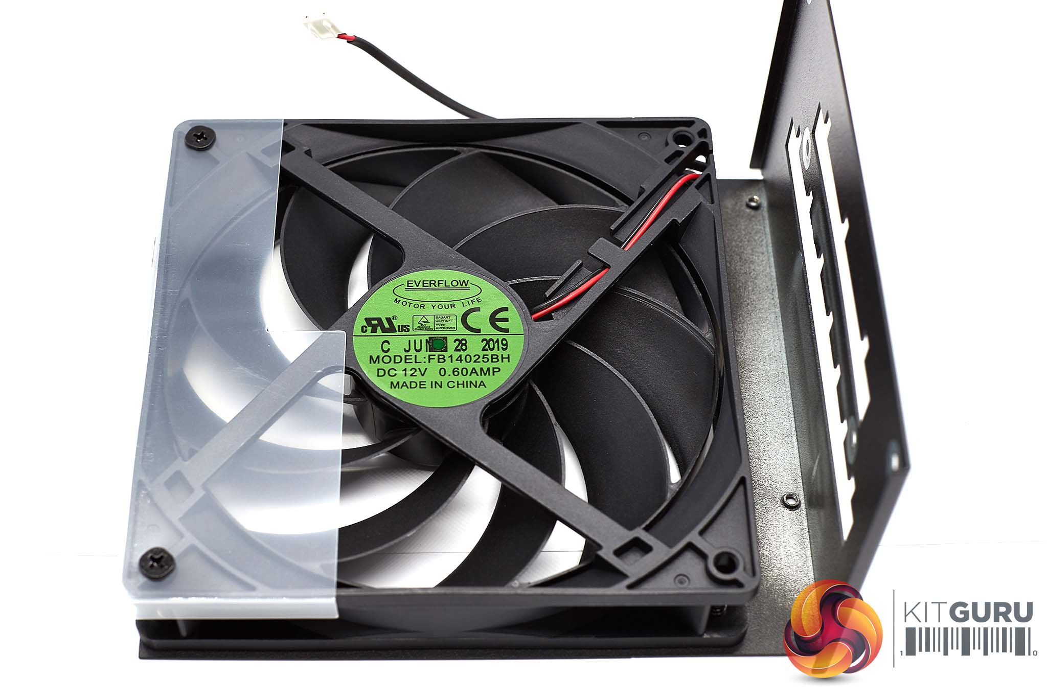 ASUS are using an ‘everflow' fan, a dual ball bearing model marked ‘FB14025BH' rated 12V 0.60 AMP.
