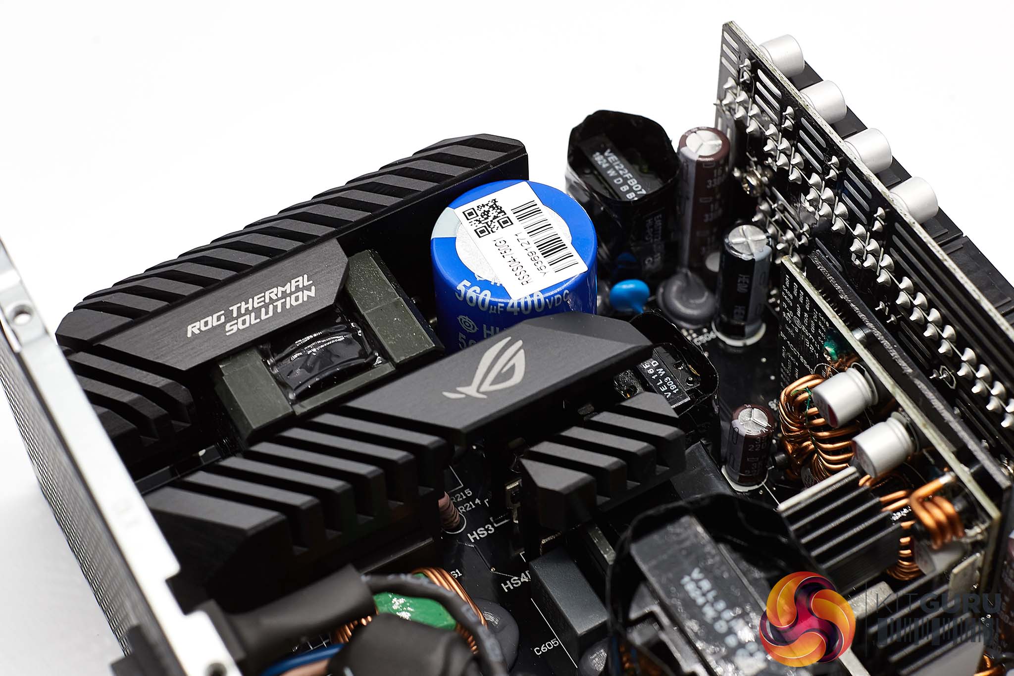 Asus are using bigger heatsinks to likely try and reduce noise levels. By memory the PCB looks to be a bit bigger too. Asus are using high grade 105c rated Japanese capacitors throughout the design with the primary hold up capacitor rated 560uF 400V @ 105C.