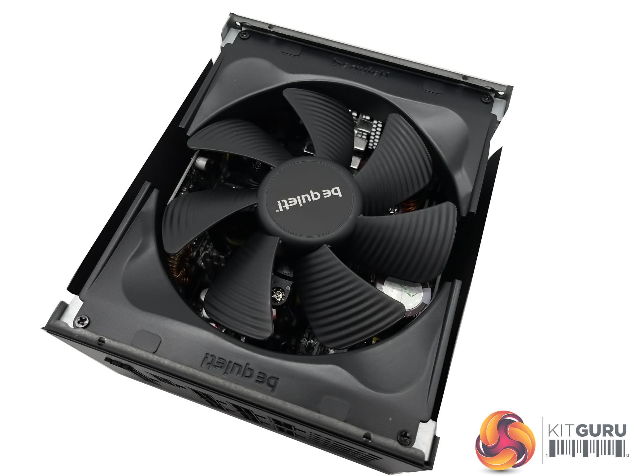 After removing the top of the power supply we can see the fan is sandwiched between two pieces of plastic. This ‘frameless' fan design was created by be quiet! to help reduce noise levels. The fan has been developed for use specifically in power supplies and is a unit adapted from the Silent Wings 3 range.