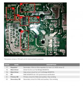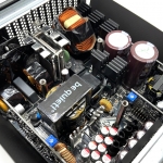 This is a block diagram of this specific design. The Dark Power 12 has a bridge rectifier on the AC side utilising four N-Channel Super Junction MOSFETs, controlled by four controller ICs, called CMDRBR. This helps the supply to reach the lofty heights of Titanium efficiency. Full Bridge is the number of MOSFETs used in the PWM stage (no 4 in the block diagram above). The MOSFETs are responsible for creating high frequency alternating current, which gives high levels of efficiency for the main transformation.