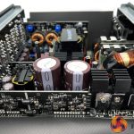 This LLC circuit is responsible for smoothing out the alternating voltage. The Dark Power 12 is using both pulse width modulation and frequency modulation to adjust power transformation. Starting at around a load of 10 to 15 percent, the LLC circuit modifies the frequency, producing better results. The best results are obtained at low frequency and high load or vice versa.