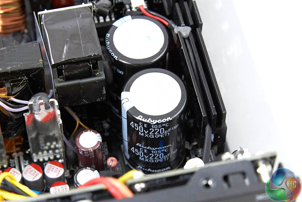 The Dark Power Pro 11 550W power supply incorporates two 105c rated Japanese capacitors in the primary stage – rated 450V 220uF. This time Rubycon capacitors are used, while we noted Nippon Chemi Con inside the 850W unit earlier this year. We consider both companies to produce some of the best capacitors for this specific market. be quiet! have enhanced the design of the PFC stage by using special high quality plastic capacitors to reduce noise – exceeding the quality of the capacitor in the previous generation model.