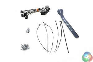 be quiet! include felt and plastic cable ties, along with screws and external fan headers. The overclocking key allows the end user to switch between single and multi rail 12V mode. They also supply an overclocking jumper in the bundle.
