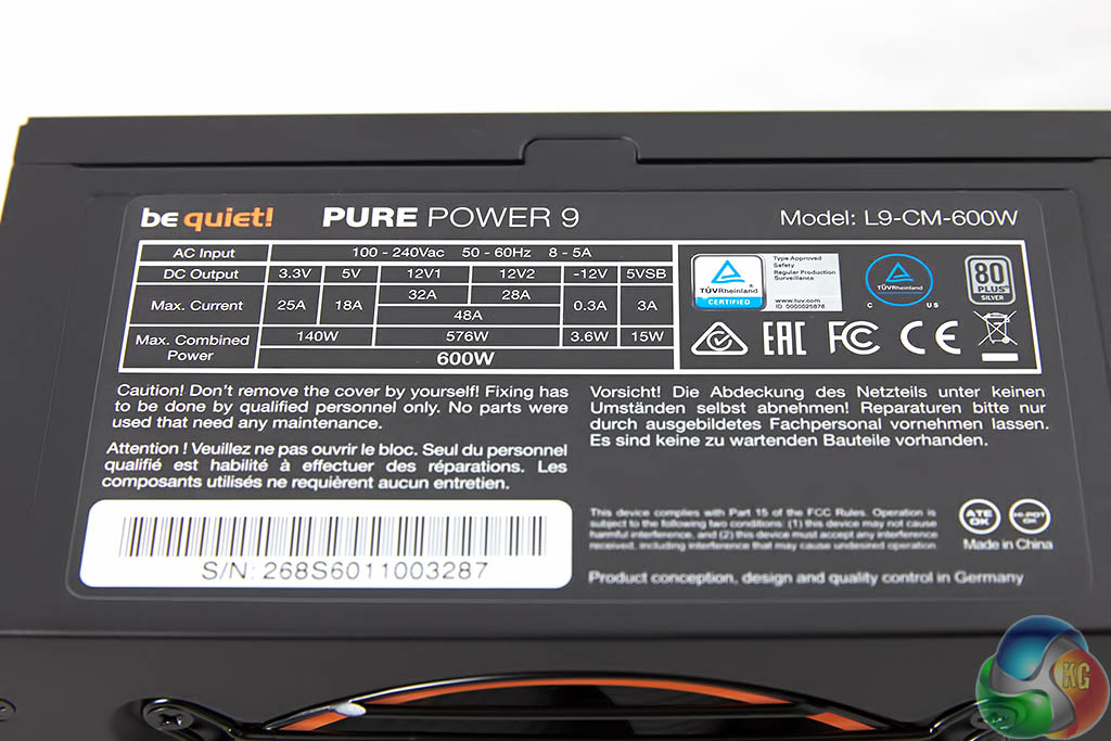 The be quiet! Pure Power 9 follows the traditional company design – high quality paint, with thick metal bars to protect the user from the fan. The orange accents are both subtle and attractive.