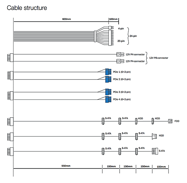 The Straight Power 10 CM 600W power supply offers four 6+2 pin PCIe cables, which is enough to cater for a modest Crossfire or SLi configuration.