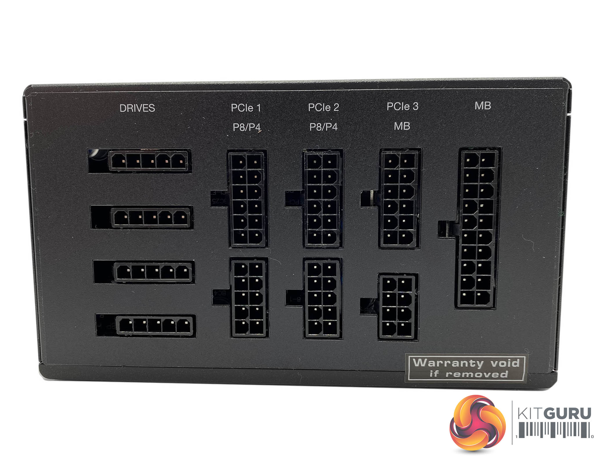 The other side of the power supply is home to the modular bay for the connectors – all in vertical rows and clearly labelled.