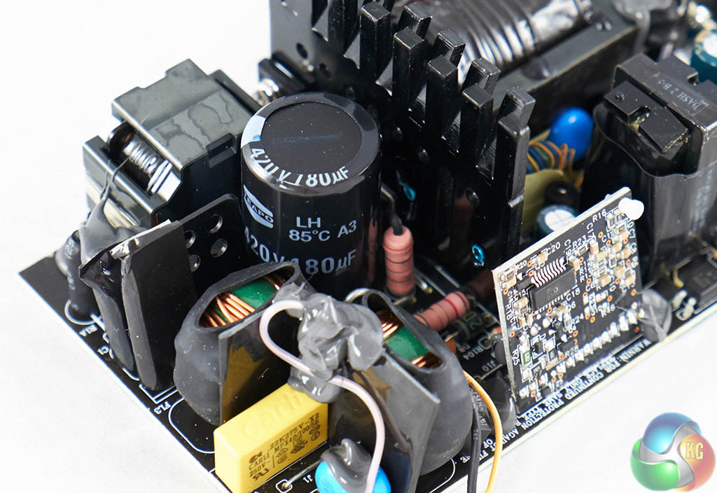 be quiet! are using a Chinese TEAPO 85c rated capacitor in the primary stage. This is rated 420V and 180uF. TEAPO wouldn't be our first choice, but it looks as if be quiet! are working to a very specific budget. Secondary stage capacitors are a mixture of Chinese brands … mainly TEAPO.