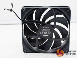 This particular power supply adopts a 140mm Pure Wings 3 fan rated 0.42A, DC12V and with a maximum rotational speed of 2,100rpm. The blade design of this fan is proprietary to be quiet! There are no strips of plastic across the blades to specifically direct the airflow. We noticed when testing that the fan spins for several minutes after the unit is turned off to help with component wear over time. This is a modified fan designed specifically for this application.