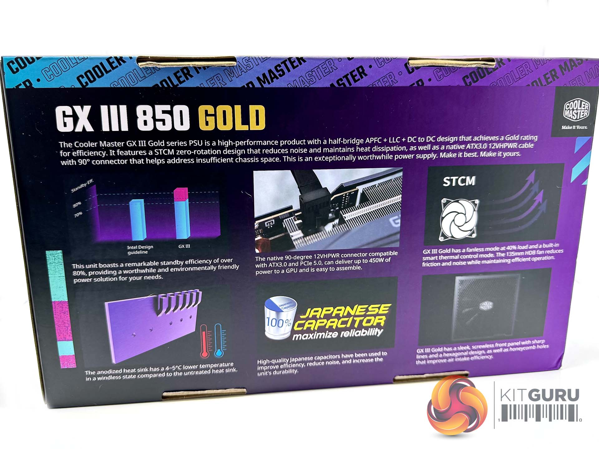 The front of the box showcases a photo of the GX III along with some specifications on the right side.