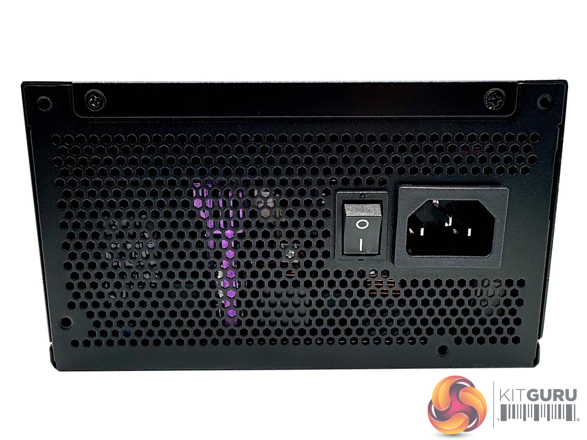 One side of the PSU is home to a power switch and connector with a vented panel to aid with airflow. We can vaguely see a purple heatsink inside, although we will get a closer look at this soon when we open it up.