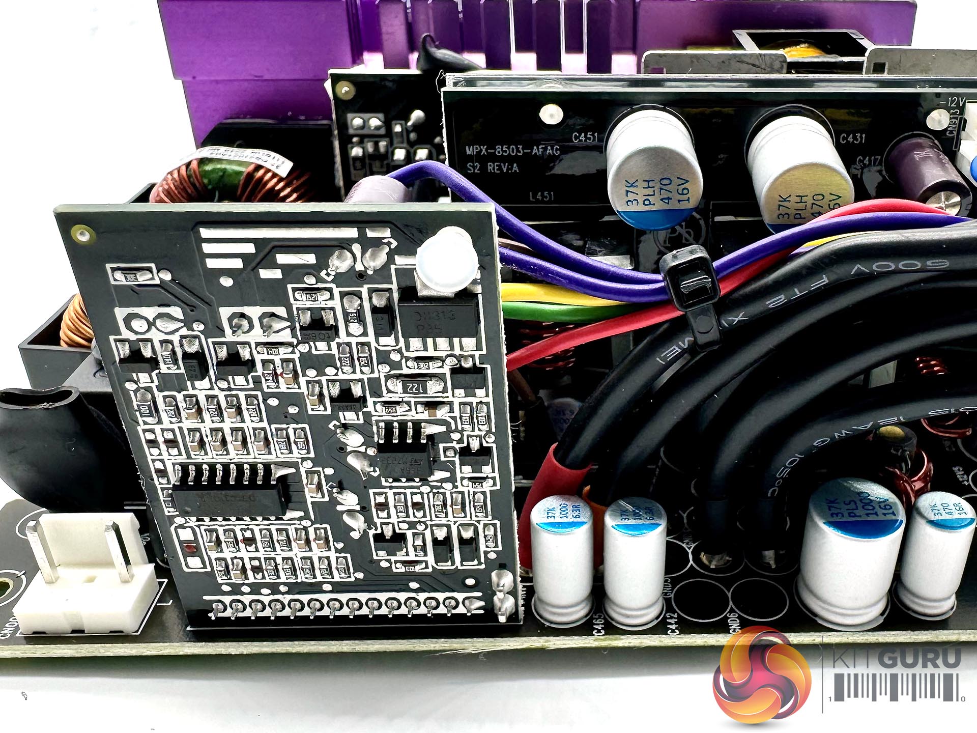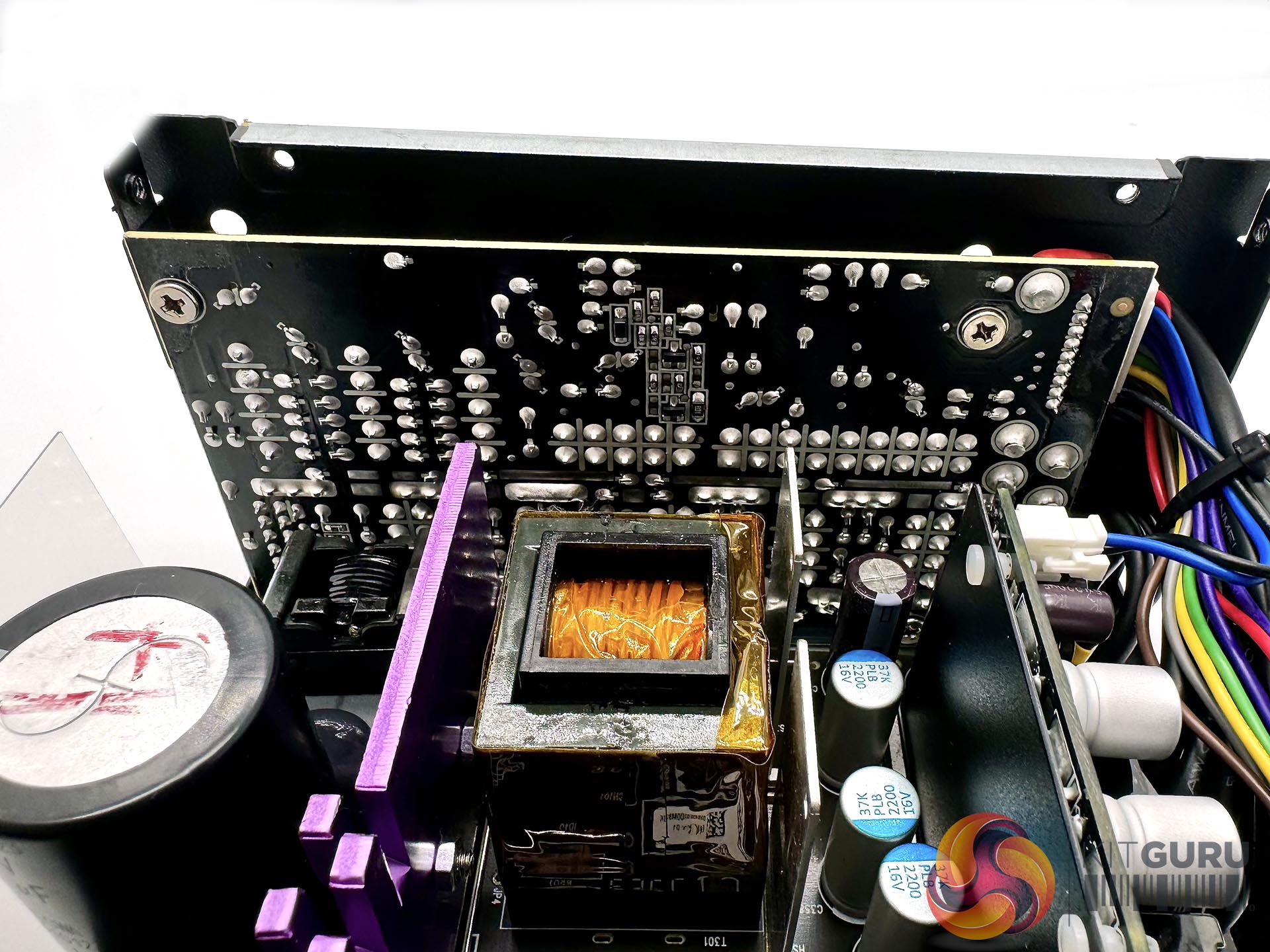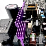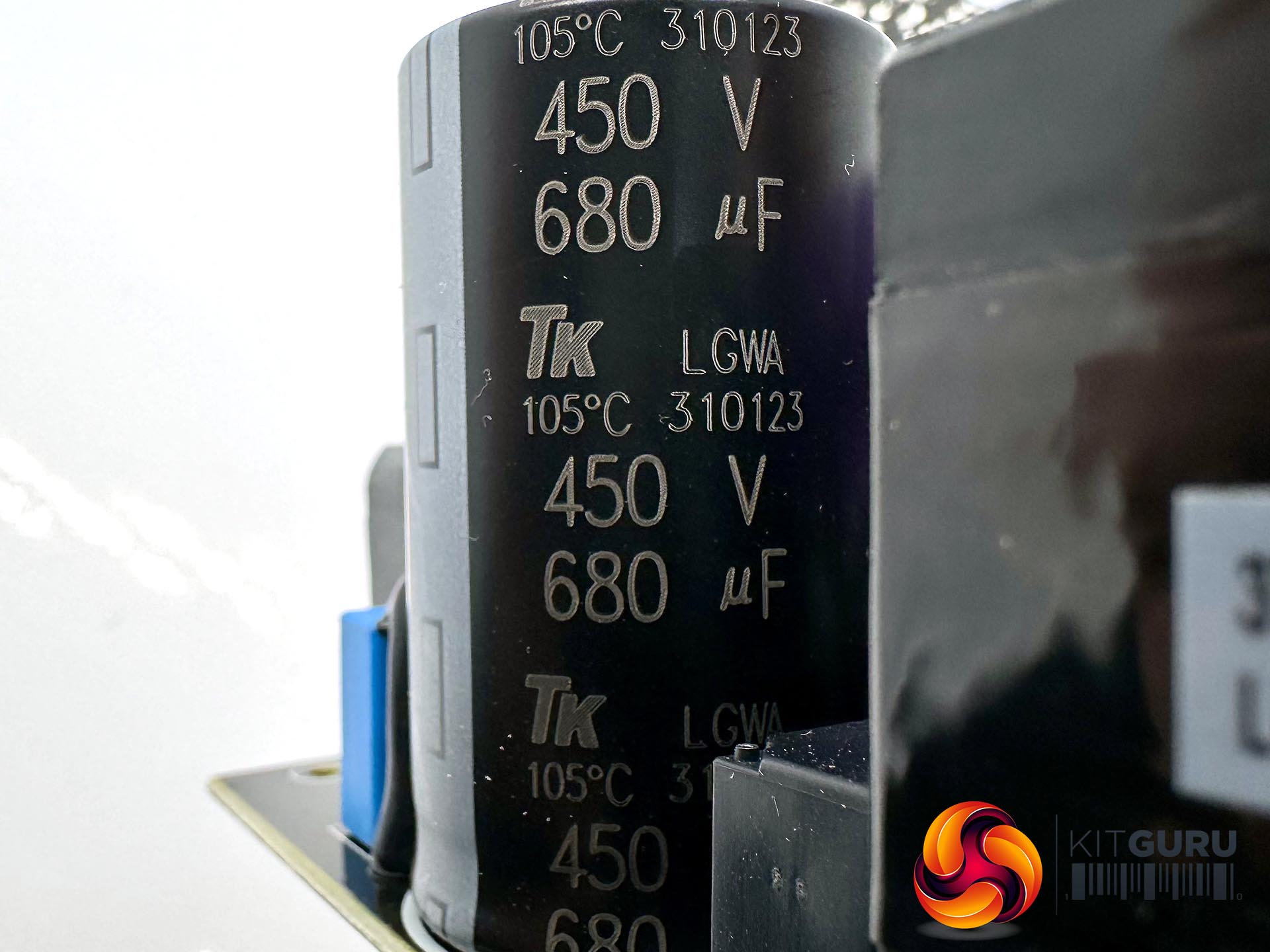 As we can see from the images above the design incorporates purple ‘anodised' heatsinks which certainly stand out – if the end user would ever have the unit apart in the real world that is. The main capacitor is rated 450 V 680uF at 105c. The TK stands for Toshin Kogyo Co. Ltd, and from what I know they are Japanese capacitors from quality sources.