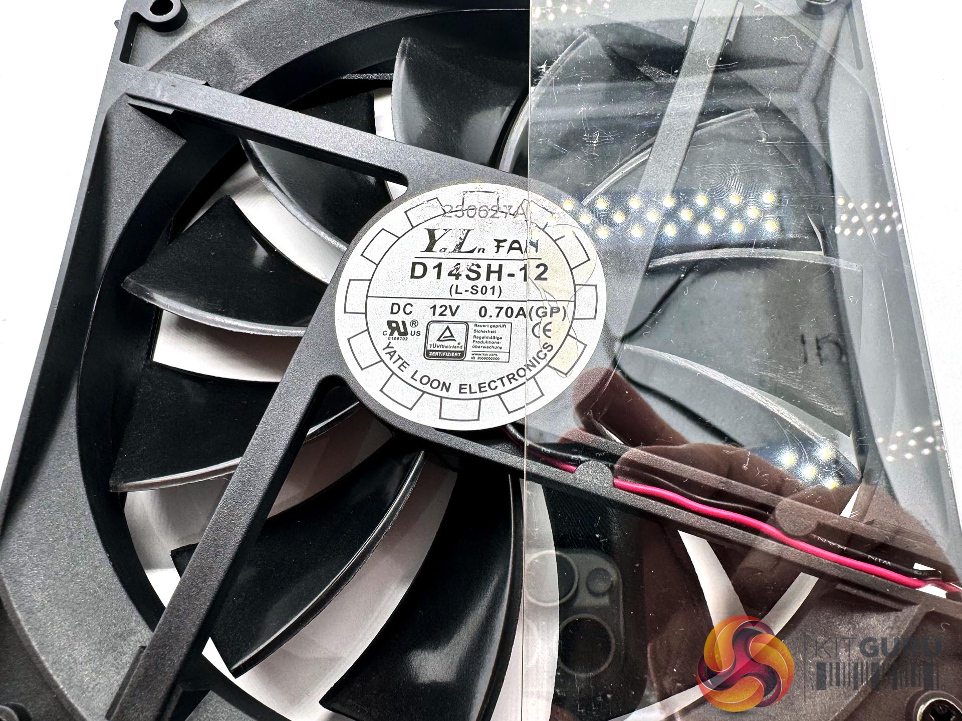 Cooler Master are using a fluid dynamic bearing Yate Loon D14SH-12 Fan, 140mm rated at 12V 0.7A. This is not a high end fan and is clearly selected to save some costs overall.