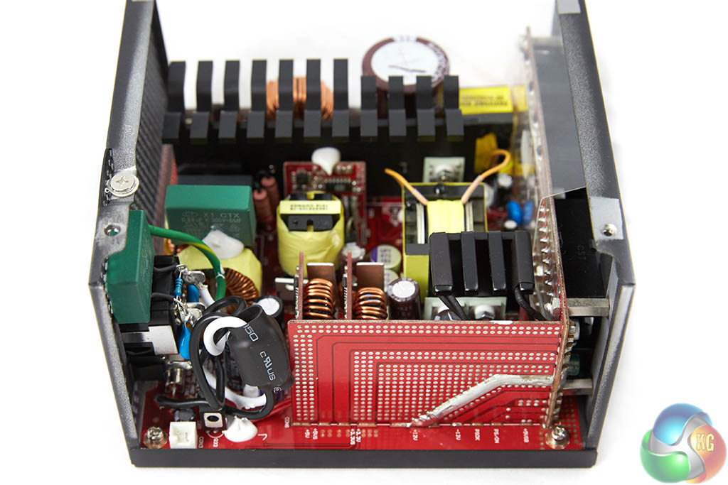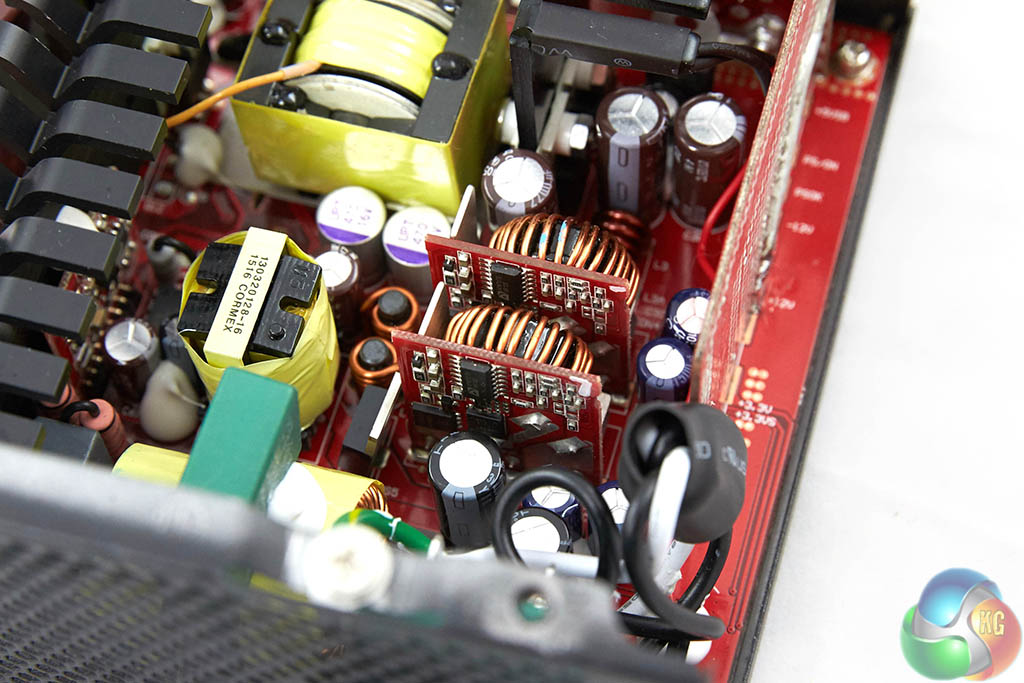 This is an Enhance OEM design, a company Cooler Master have a long standing relationship with – even if they like to keep it quiet. Their previous, high capacity V series power supplies were actually Seasonic KM3 modified designs. This one is LLC + DC-DC topology and we can see the daughtercards in place for generation of the +3.3V and +5V rails.