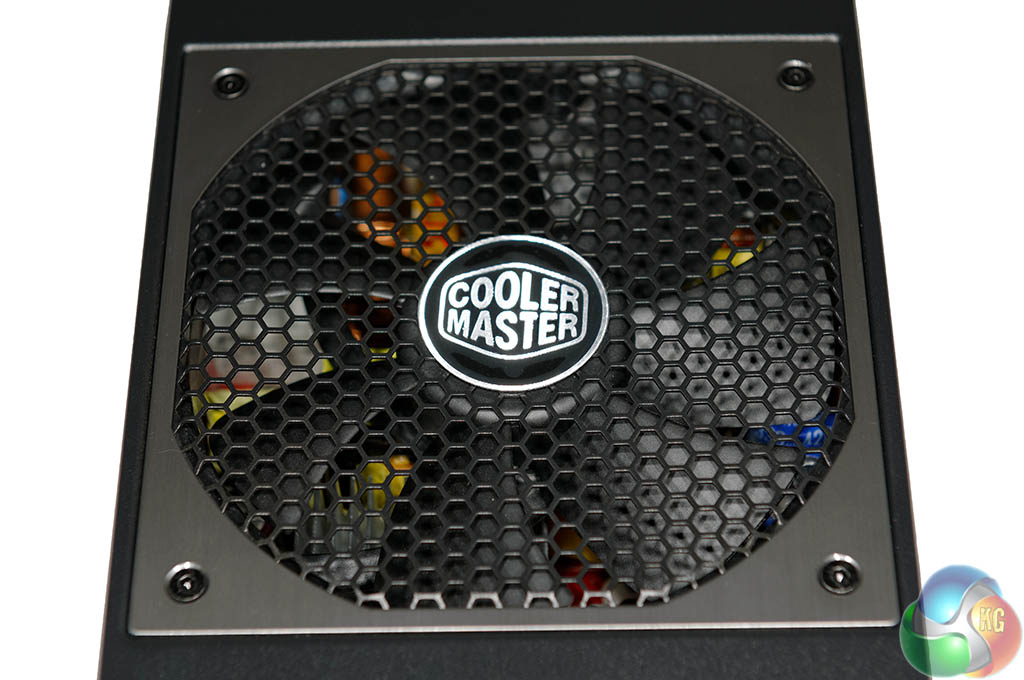 While the power supply is predominately finished in matt black paint, the fan surround is finished in silver, which gives it a little depth. The Cooler Master badge is visible in the middle of the metal grill.