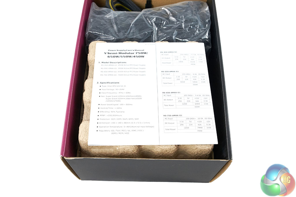 The picture above left is the modular cabling supplied. Picture above right are the hardwired cables that exit the chassis. A little disappointing to see that the modular cables are all the flat ‘ribbon' style, but the hardwired cables are all more traditional ‘sleeved' – these are more difficult to route. Ideally I would have liked to see more modular cables, and less hardwired cables.