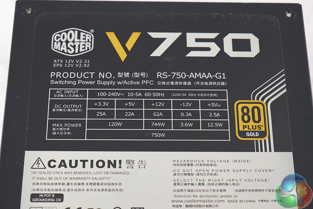 The Cooler Master V750 Semi Modular power supply can deliver 62 AMPS on the +12V rail, for a total of 744 watts of power.