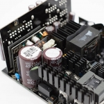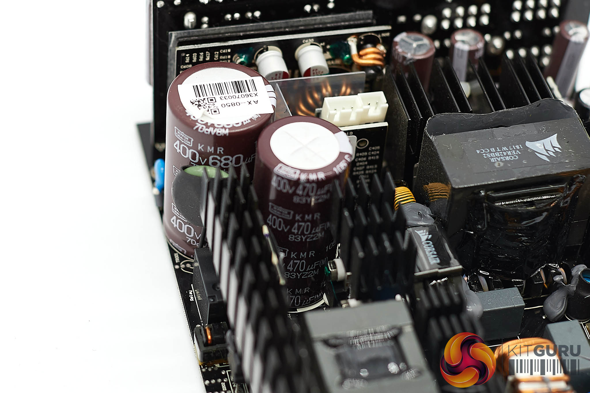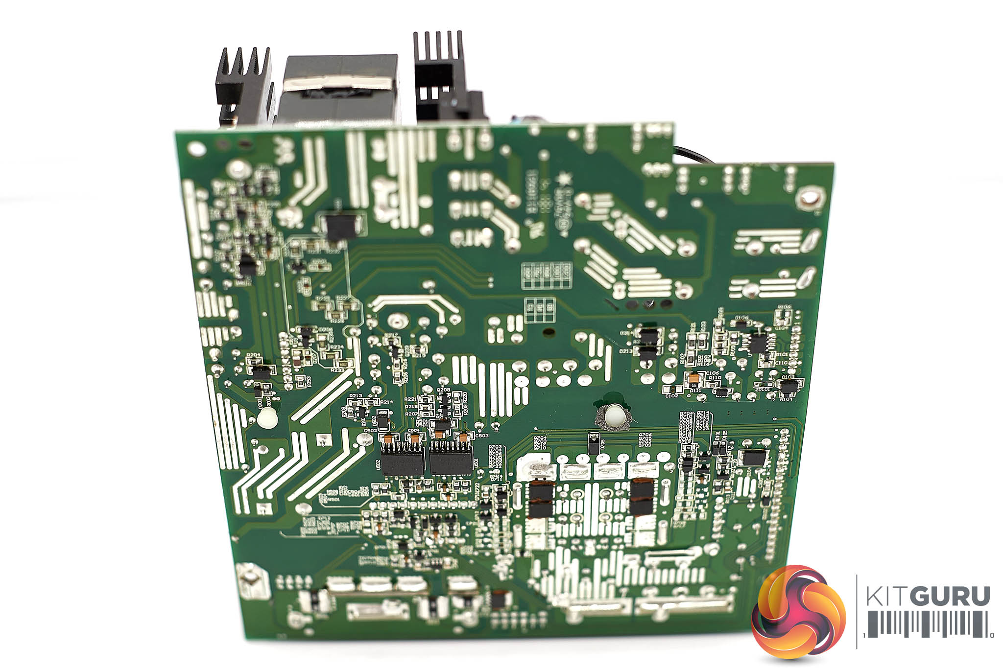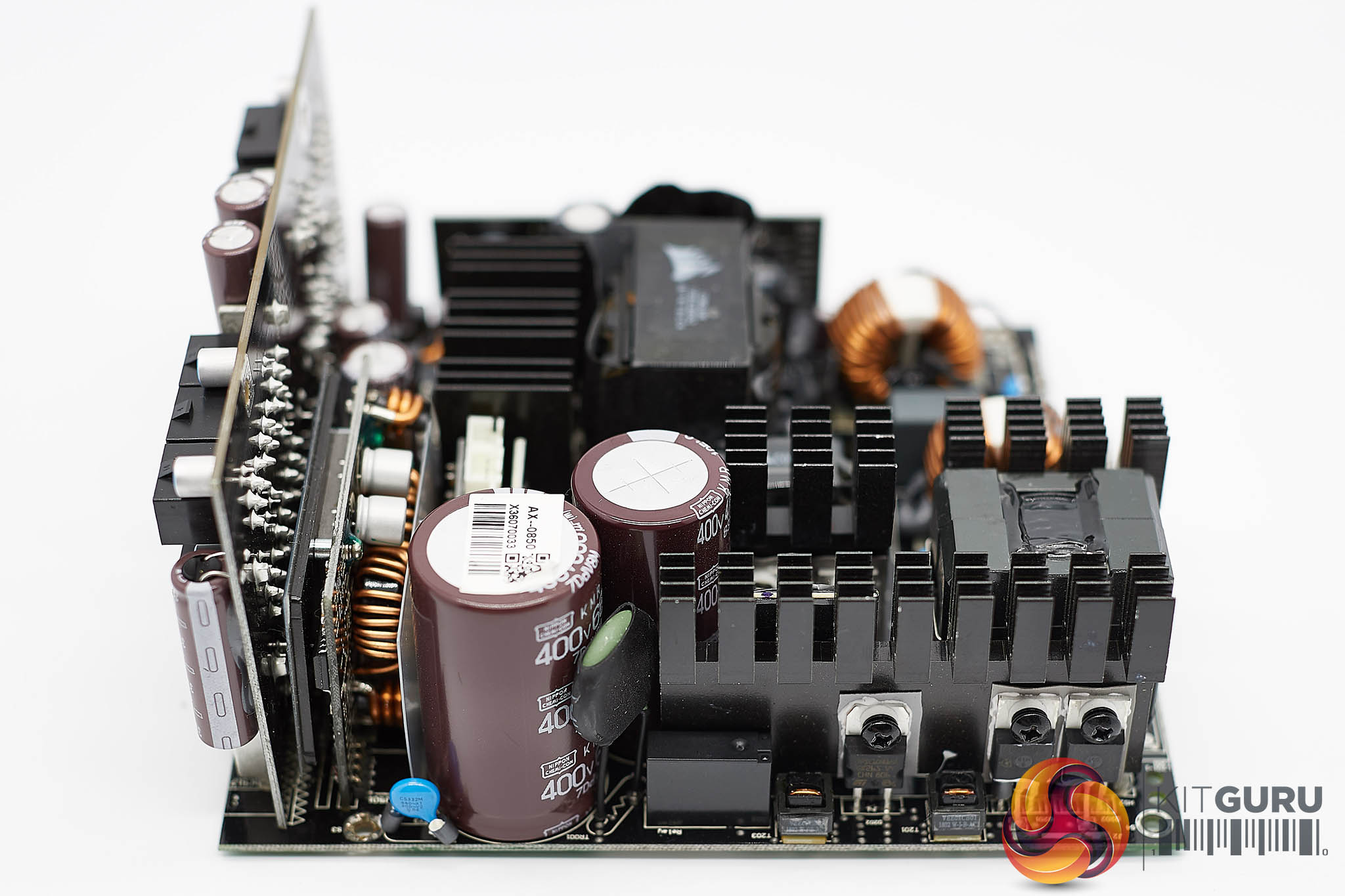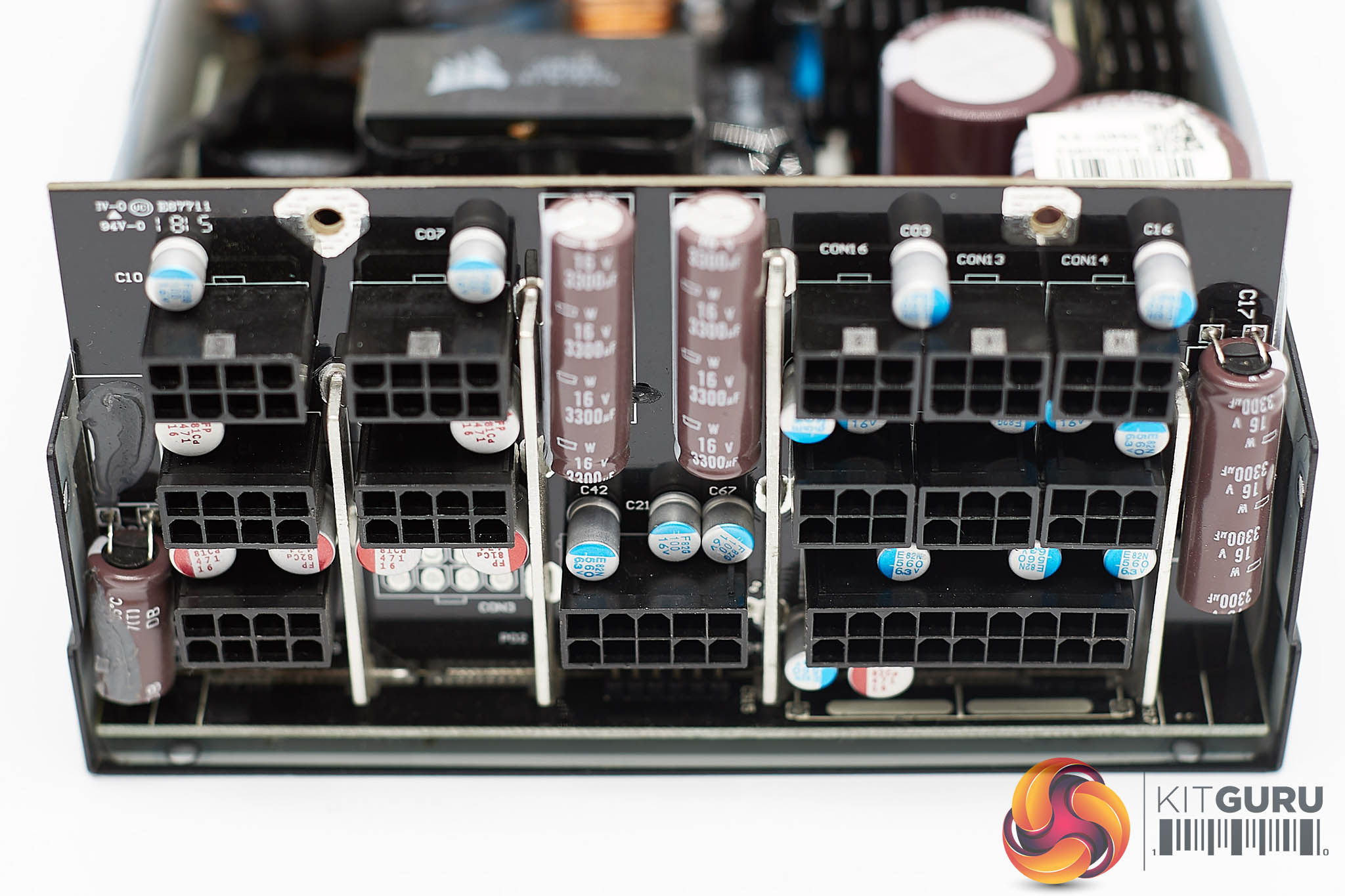 We notice that even though this unit is Titanium rated and clearly highly efficient, Corsair have populated the PCB with 4 or 5 heatsinks in key positions – just to ensure heat gets removed in situations with little, to no airflow.