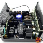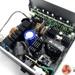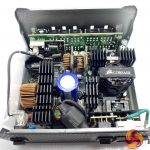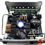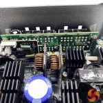Corsair have partnered up with HEC for this unit. This is a half bridge topology with an LLC resonant converter. We are happy to see Corsair using a 105c rated Japanese capacitor in the primary stage , rated 390uF at 400V. The electrolytic filtering caps on the secondary side are supplied by TEAPO. Soldering quality throughout is really good. There is a pair of bridge rectifiers capable of handling 16 amperes of current.