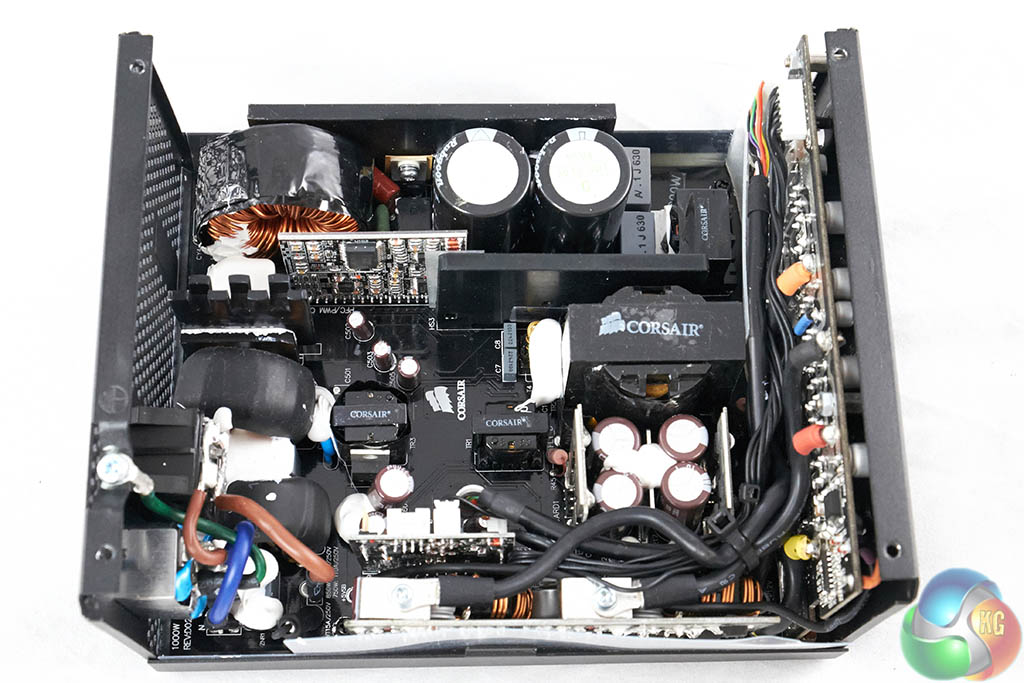 The internal layout of the HX1000i is very clean with plenty of space for airflow from above. Soldering quality seems relatively high throughout.