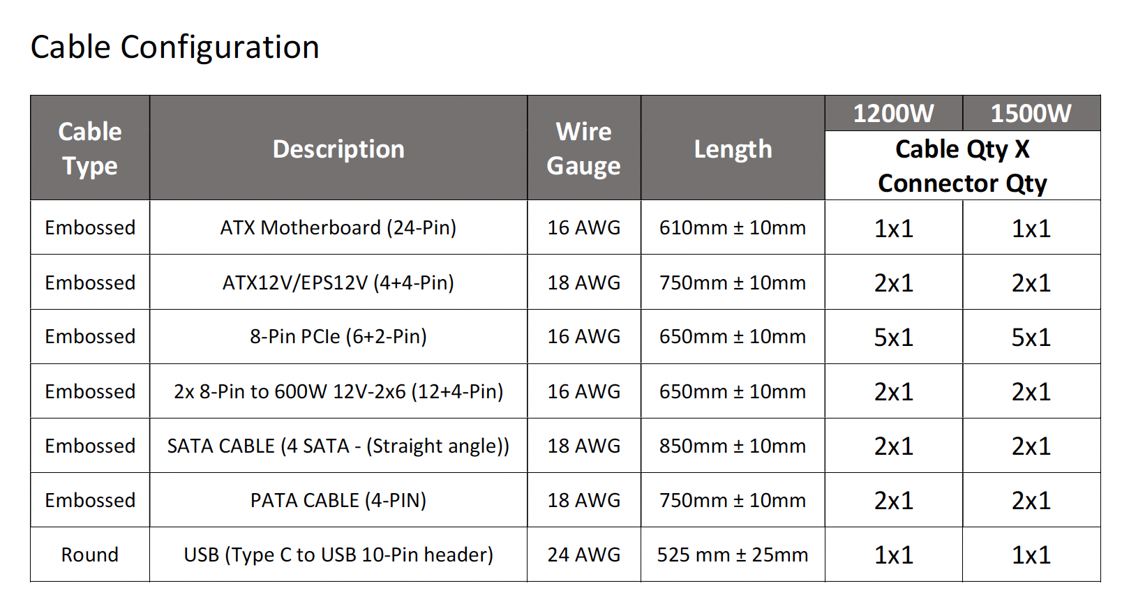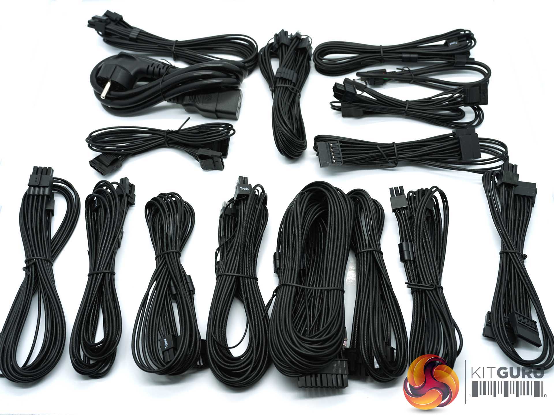As you would expect with a high end 1500 watt power supply, Corsair include a wide variety of high quality cables to cover every eventuality. The cables predominately are 16-18 AWG. None of them have in cable capacitors.