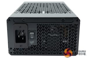 The power side of the unit is home to the power switch and connector. Due to the power of this specific supply, it requires a C19 power cable. C13 is a standard connector for low-power devices like PCs and TVs, while the C15 is a “hot condition” version of the C13 with a higher temperature rating and a notch for secure connection. The larger C19 is built for higher power-draw equipment like servers and industrial machines, handling more current and featuring a more robust design.