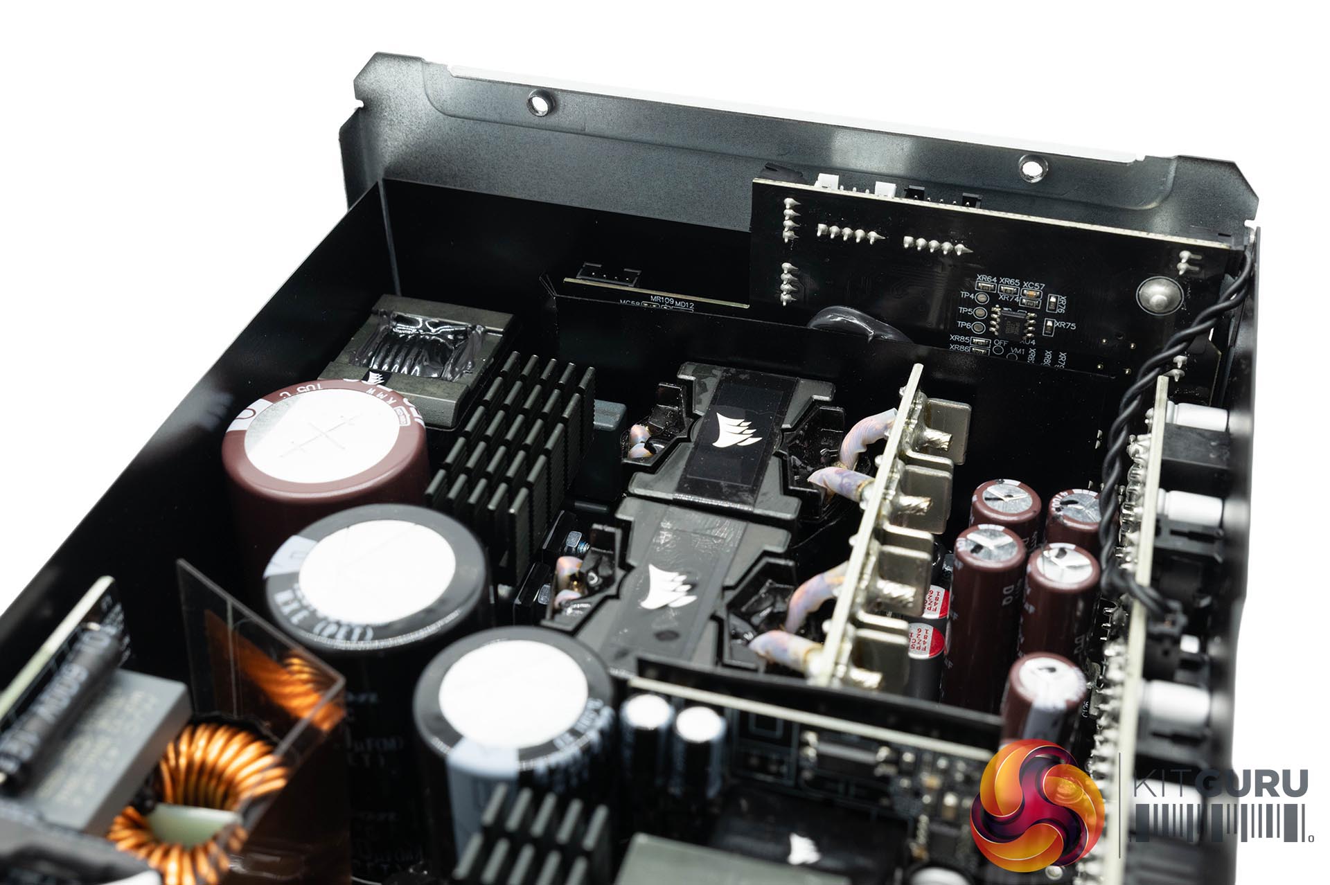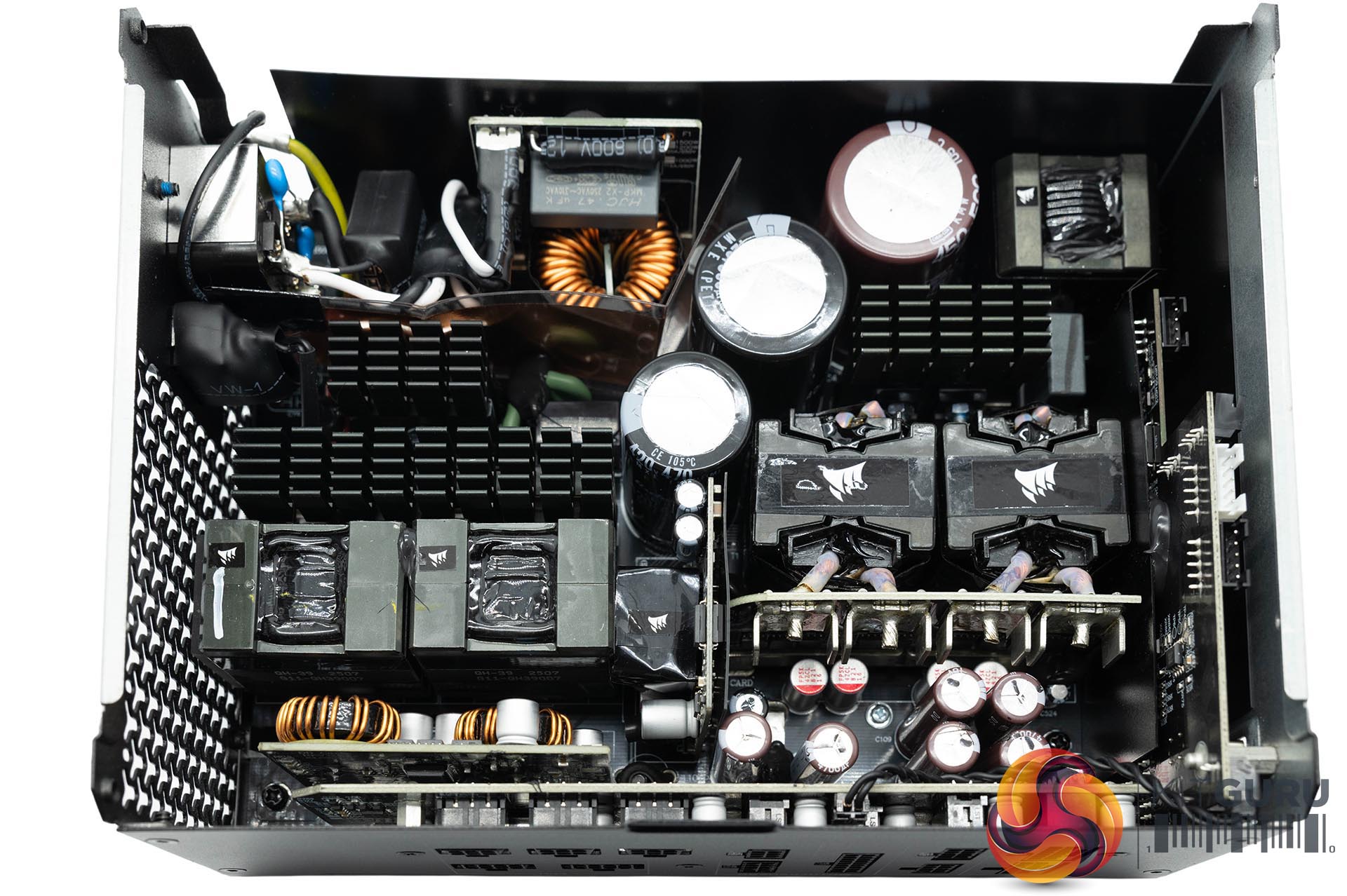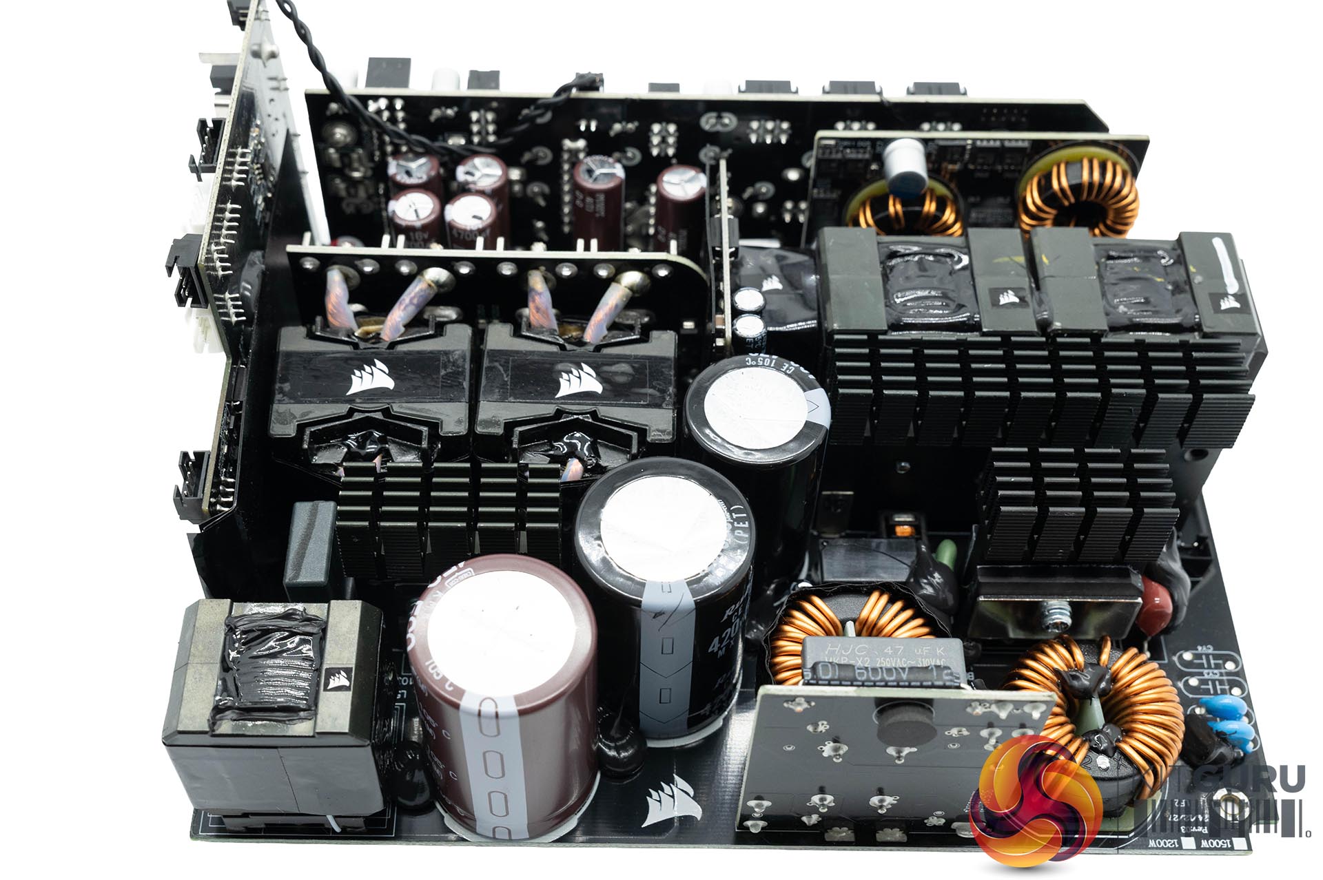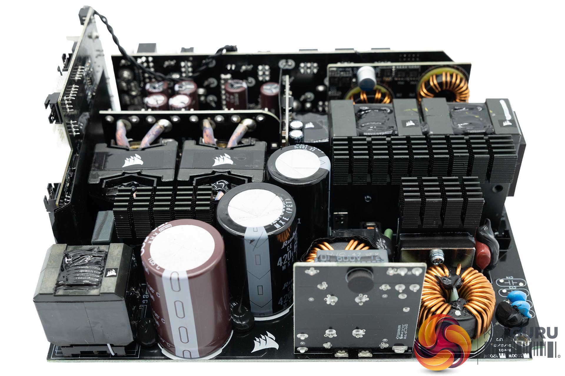 Corsair didn't tell us the OEM for this power supply, but we can see that it is a CWT (Channel Well Technology) design, in cooperation with Corsair. The primary side of this unit is full bridge topology – it has an APFC and a LLC resonant converter. On the secondary side a synchronous rectification scheme is used for 12V with a pair of DC to DC converters generating the minor rails.