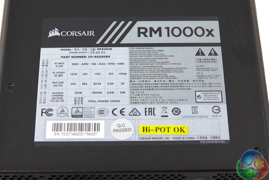 The power supply can deliver a whopping 83.3A via the +12V rail. The specifications above are actually identical to the RMi 1000W which we reviewed back in June. The RM1000x can deliver the full power over the +12V rail.