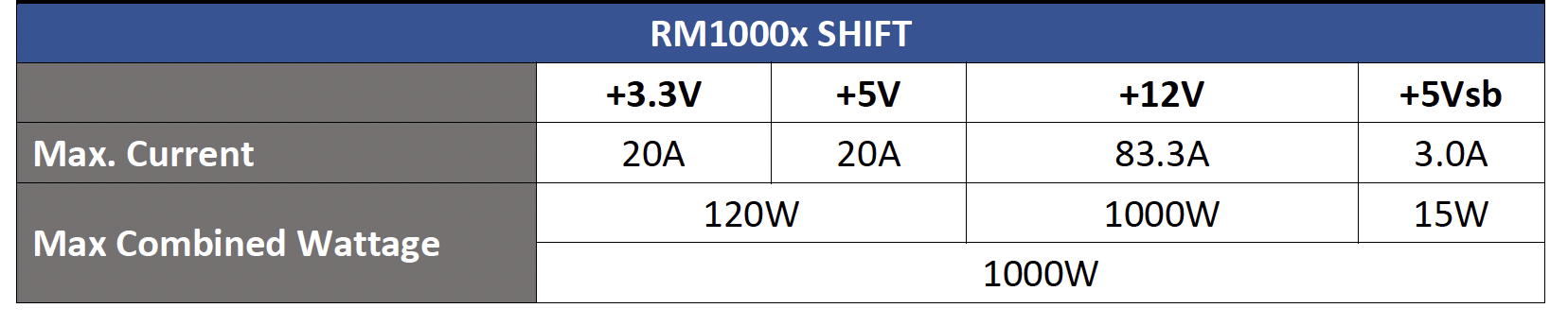 The Corsair RM1000x Shift is very nicely finished and, like their other recent power supplies, is colour neutral to suit a variety of system builds, if on show. These stickers follow the same design as the previous units, with a vertical ‘Shift' stamped onto the end.