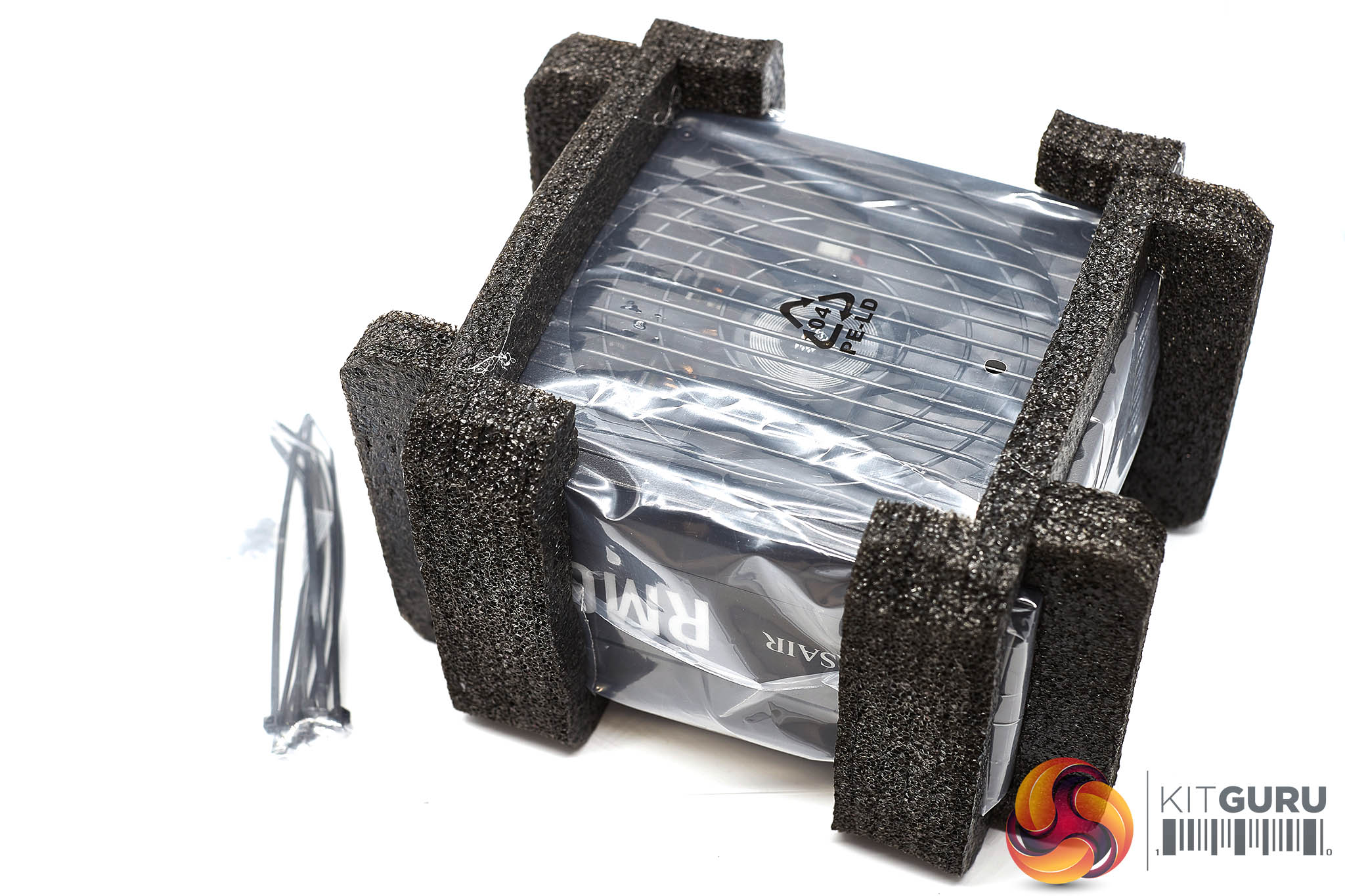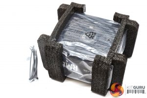 The cables are shipped inside a little cardboard box. The power supply ships protected in a little bag, sandwiched between foam.