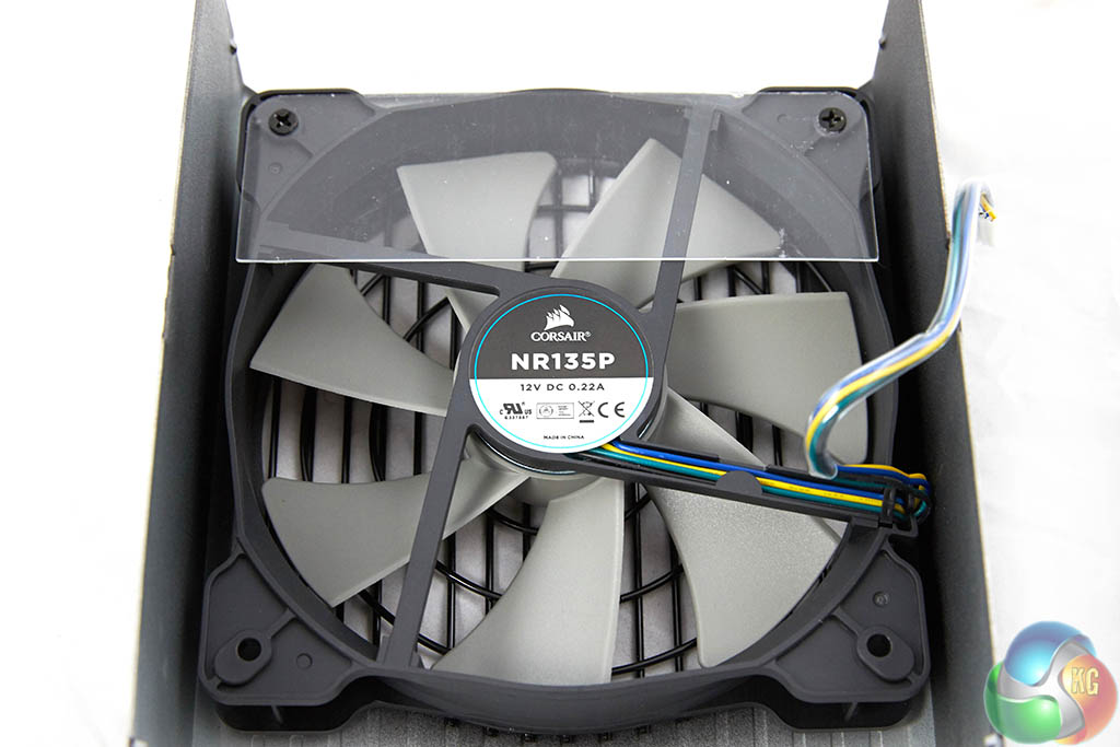 Corsair are using their NR135P fan inside the RMi Series 1000W power supply – the same fan also used in the 750 watt unit we also review today. This fan has intake blades specifically designed to move a high volume of air through the power supply components with less noise than a conventional fan design. Corsair claim the fan blades are properly balanced to help reduce resonance at higher speeds. This fan incorporates fluid dynamic bearing to help prolong life and reduce noise further than a ball bearing or sleeve bearing design.