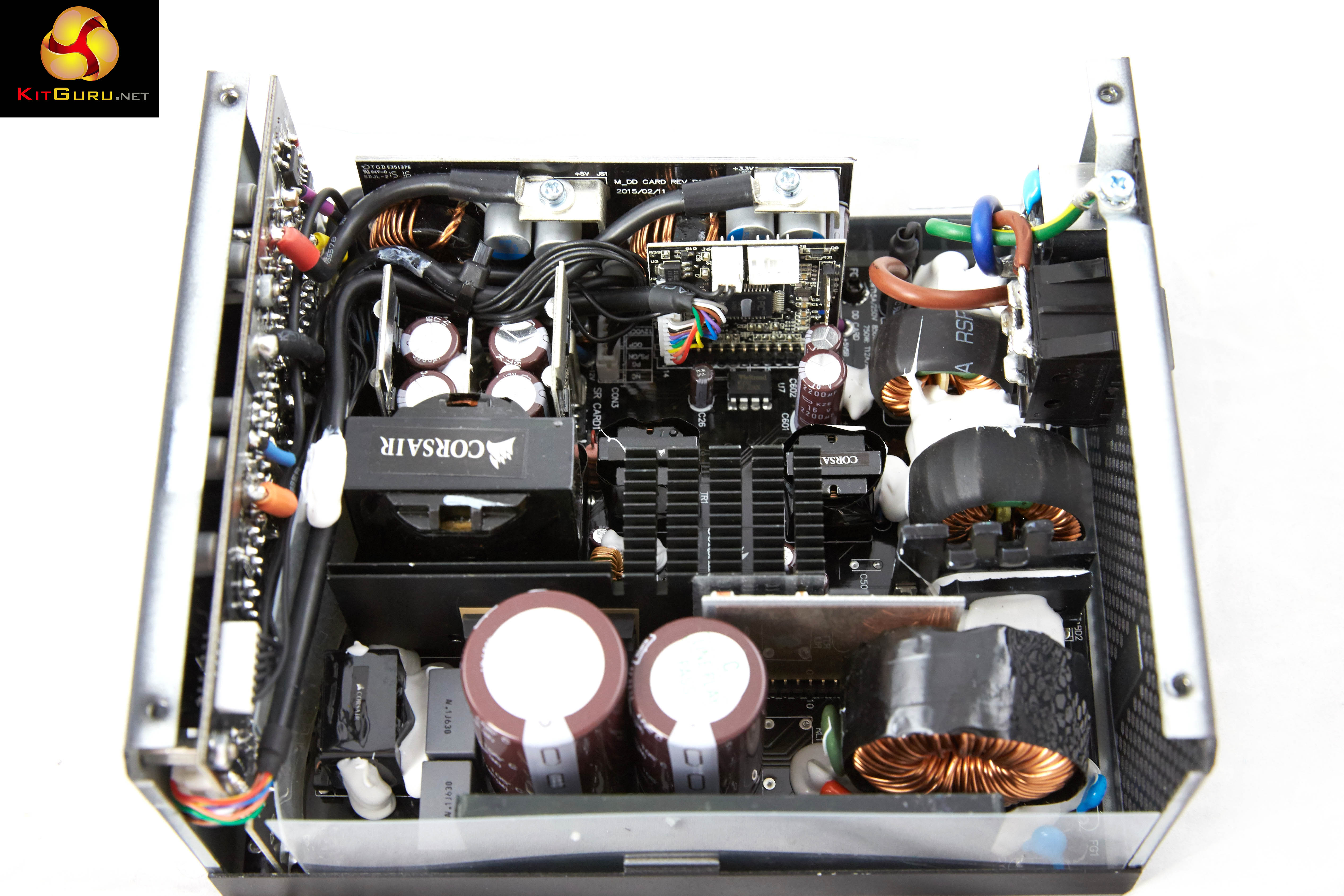 This is a CWT design and the build quality is actually very high. Soldering quality on the PCB and modular connection board is good. The 750W and 850W also have fewer PFC MOSFETs and lower power PWM MOSFETs than the 1000W unit. The 750W also has fewer +12V output rectifier diodes than the 850W and 1000W.