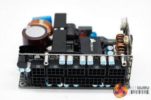 Corsair are using Great Wall as the partner for this particular power supply design. The layout, construction and overall design is very similar to the SF600 model in the range which we had a look at before. All of the electrolytic capacitors inside are Japanese made, which is good to see – especially as Corsair claim this in their literature. The primary bulk capacitor is made by Nippon Chemi Con rated for 470uF, 420C and 105C.