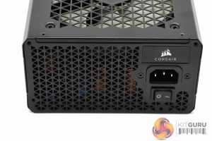 One side of the power supply is home to the modular connectors across two small rows at the rear. The other side of the unit is home to the power connector, power switch and vented honeycomb panel.