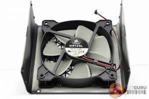 Corsair are using an NR120L (120mm) fan in this supply. Its a seven blade rifle bearing model with a 50,000 hour life rating. Rated 12V 0.22A. These are not a widely sold fan, but if you look hard you can find them online for around AUS$18 (approx. £9.80). There are no plastic covers on parts of the fan to force direct airflow downwards over specific areas of the unit.
