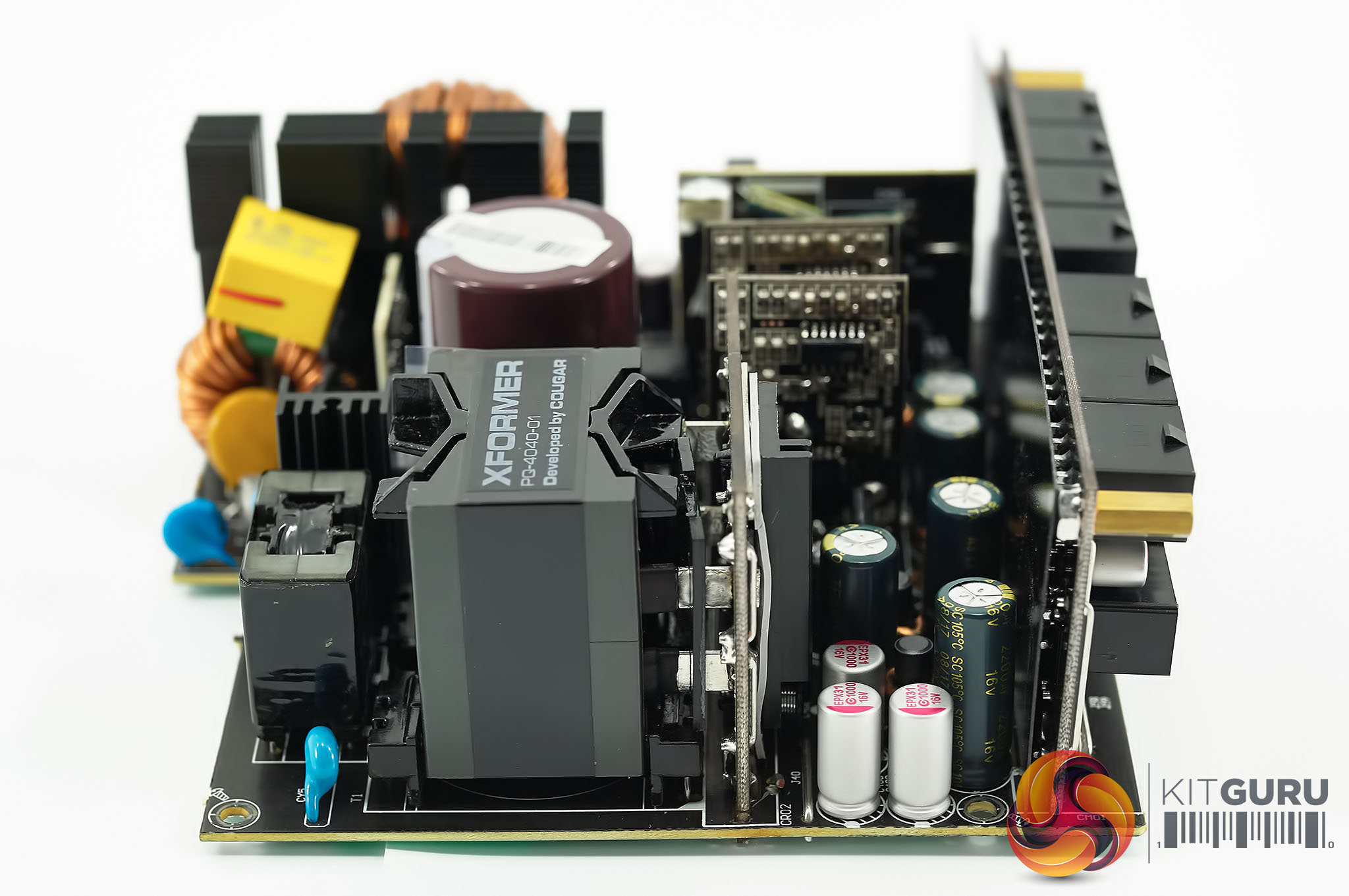 Even though no one is likely to ever open their power supply (as it will void the warranty) Cougar are keen to showcase the ‘Hydro Dynamic Bearing Fan'. Life is rated at 150,000 hours. Its a 12V 0.33A rated fan made in China.