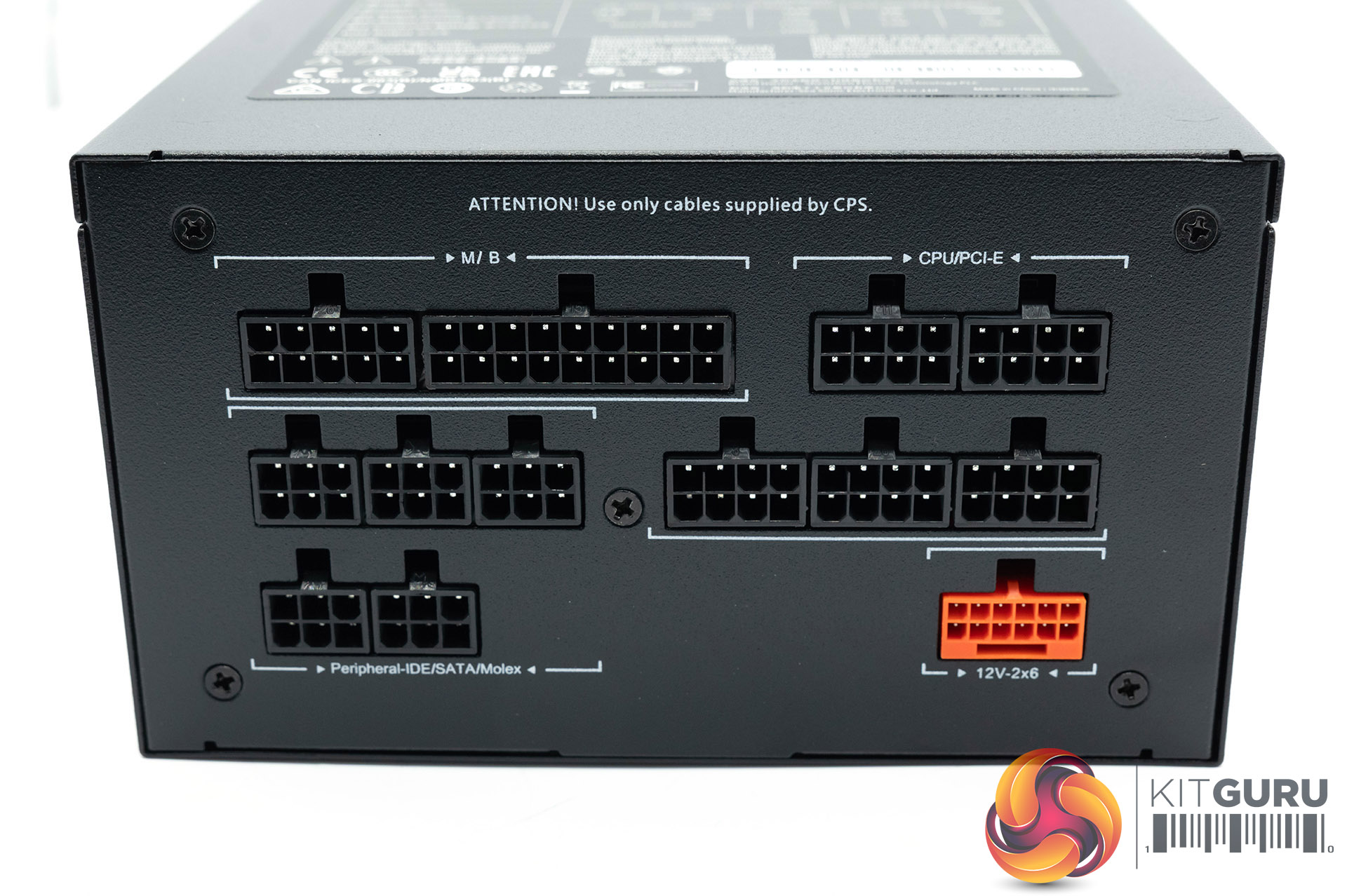 One side of the power supply is home to the modular bay, across three rows, and the other side is home to the power connector switch and the hybrid fan mode switch.