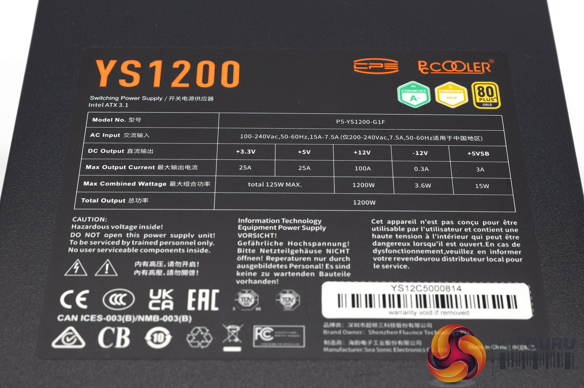 The YS1200 is able to deliver 100A across the +12V rail and 25A across both minor +3.3V and +5V rails.