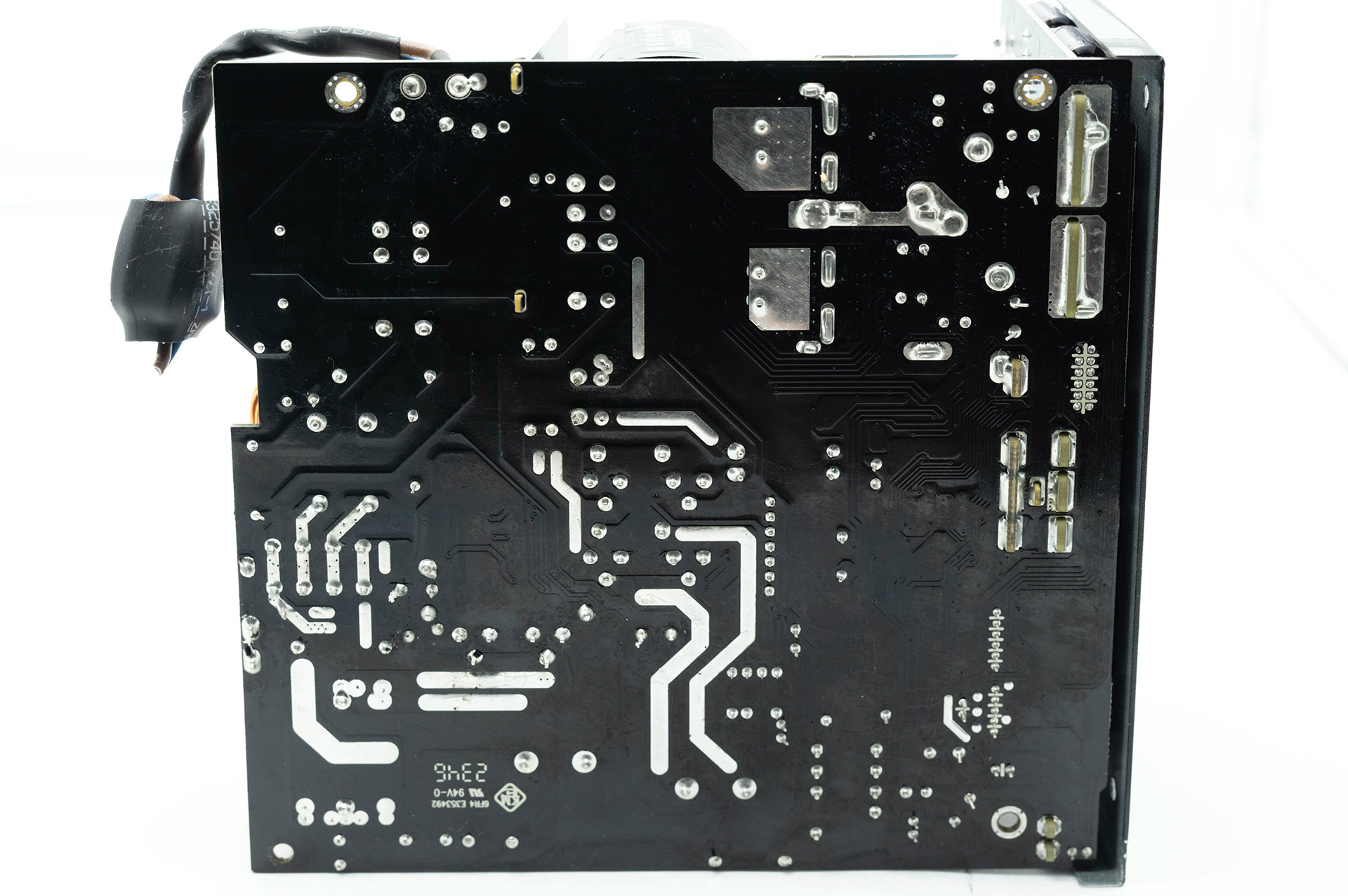 The topology of the unit is APFC, Half Bridge and LLC converter. The secondary side is synchronous rectification with DC-DC converters. Other electrolytic filtering capacitors on the board are from companies such as Nippon Chemi Con, Nichicon and Rubycon.
