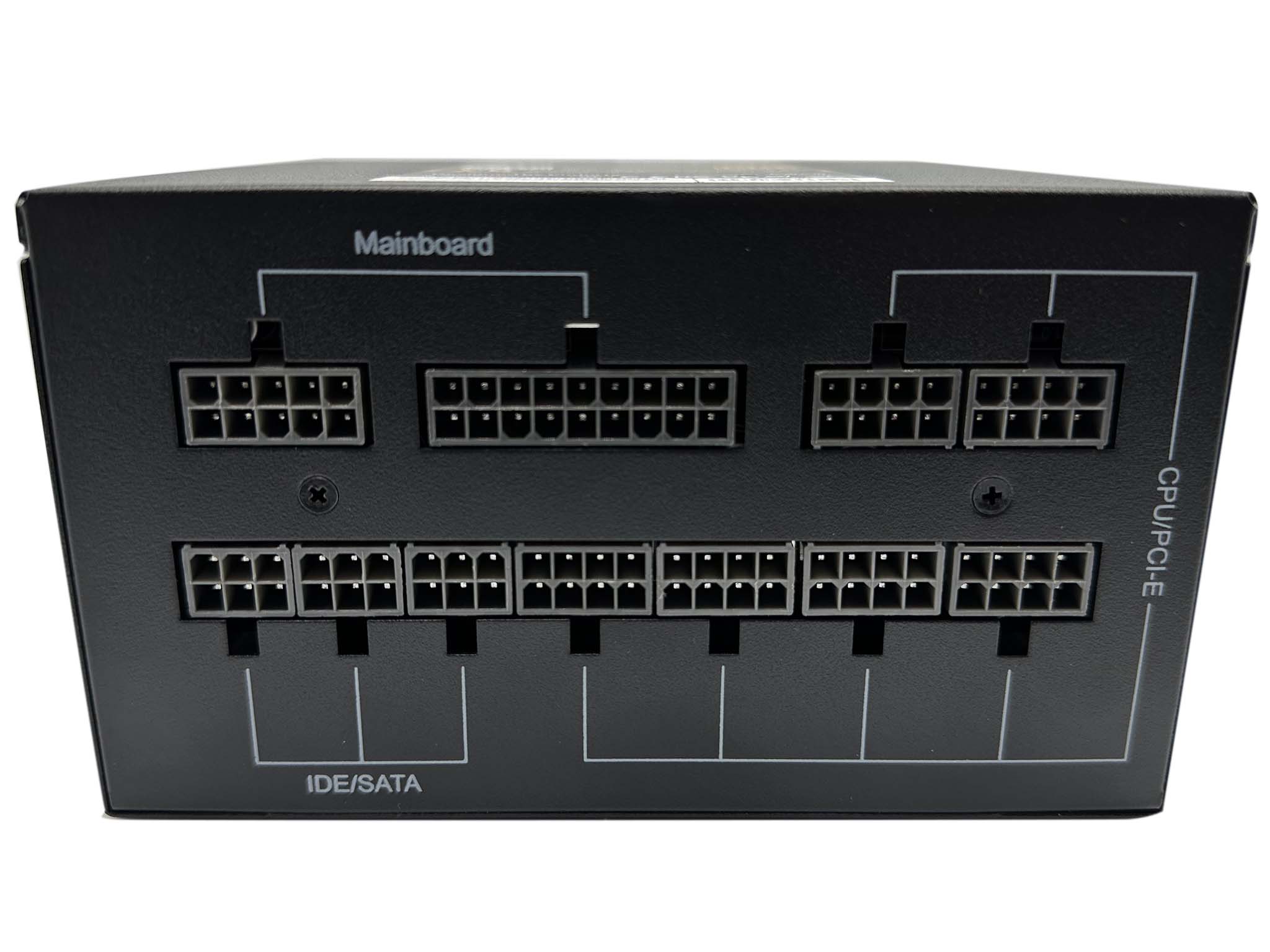 The power supply is relatively compact, measuring 77x140x15mm. The finish is of good quality and the plain colour scheme will work well in a variety of builds. If the unit is hidden behind a shroud, it hardly matters!