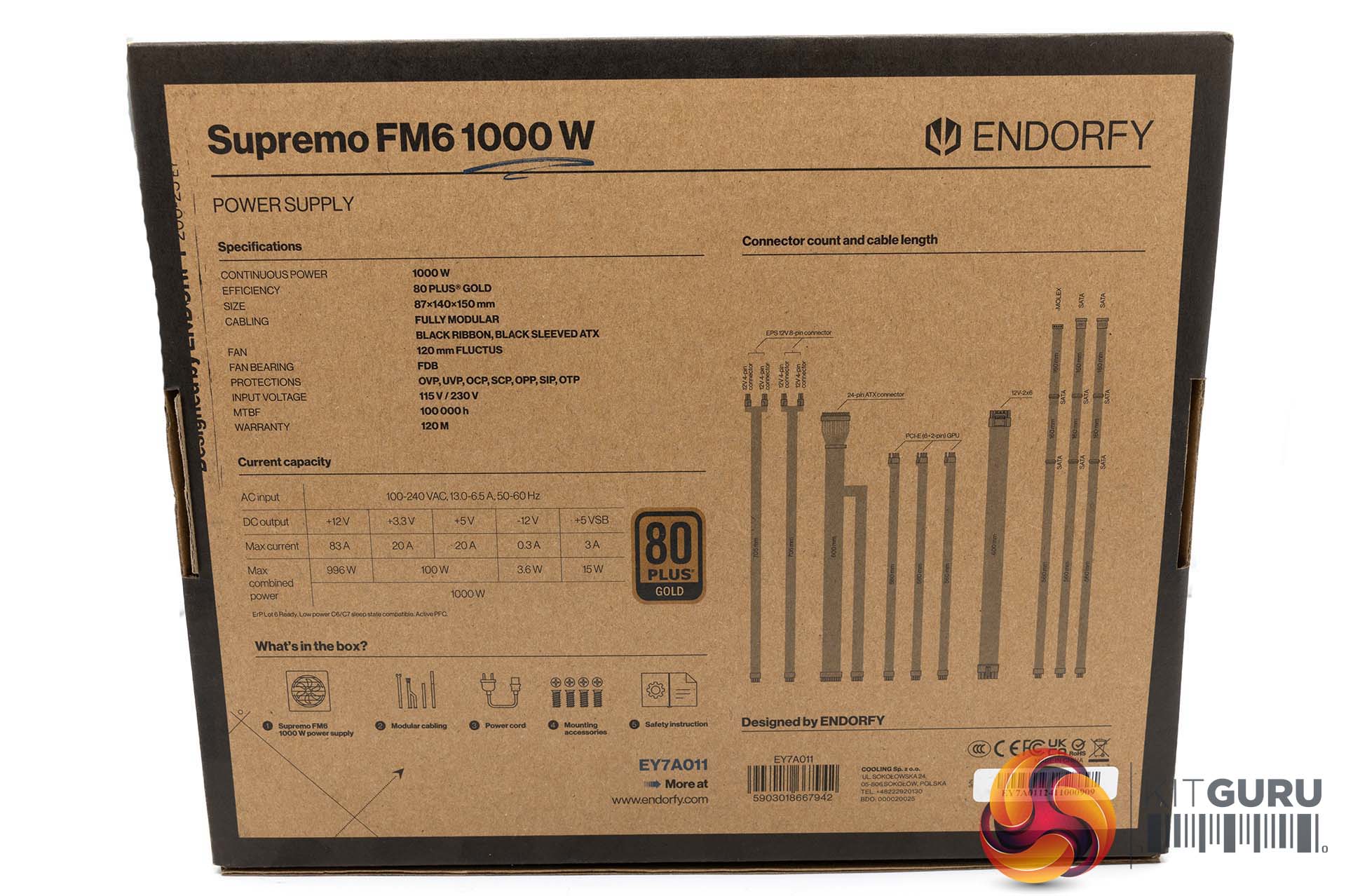 Endorfy ship these power supplies in a two tone brown box with some unit details on the front. You get the ATX 3.1 ready stamp, a highlight to the Fluctus Fan inside, notification of 100% Japanese caps, and the 10 year warranty support.
