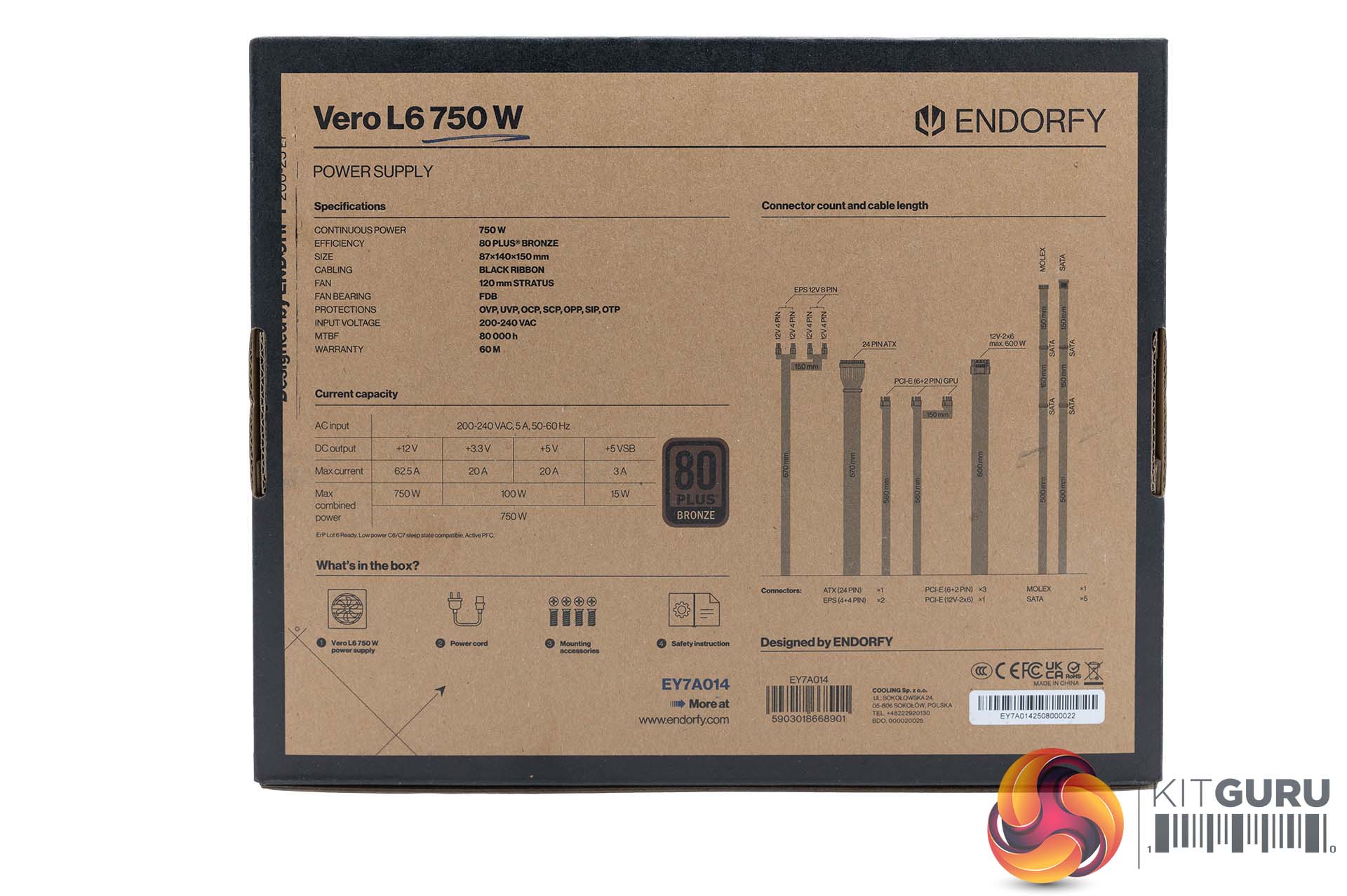Endorfy are keeping the box artwork minimalistic, with line art style artwork of the unit on the front. There is an 80 Plus Bronze badge on the front, but no Cybenetics logos, which is strange.