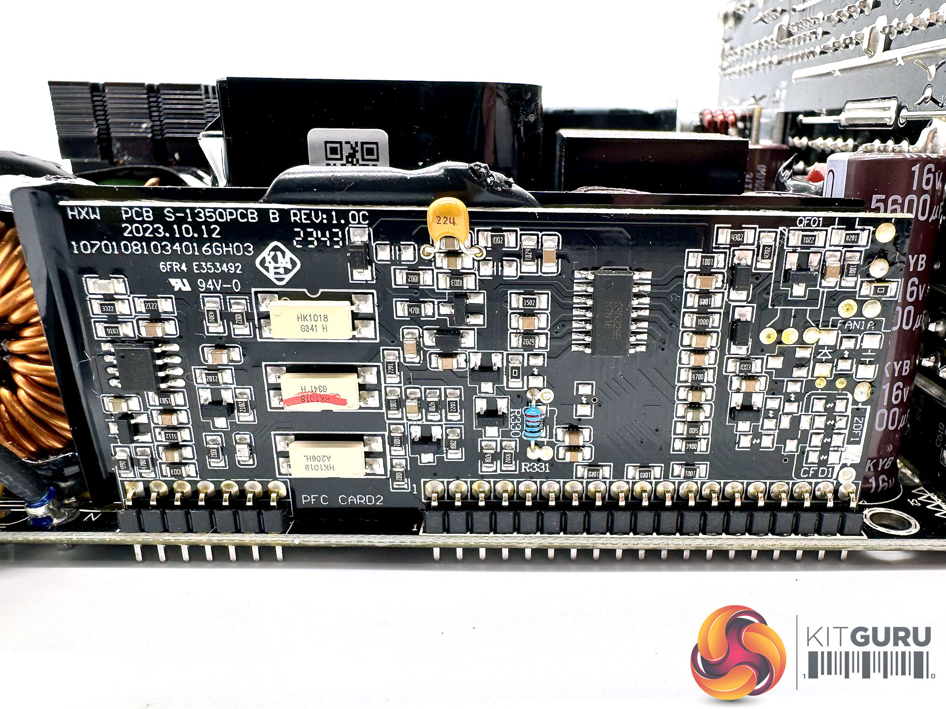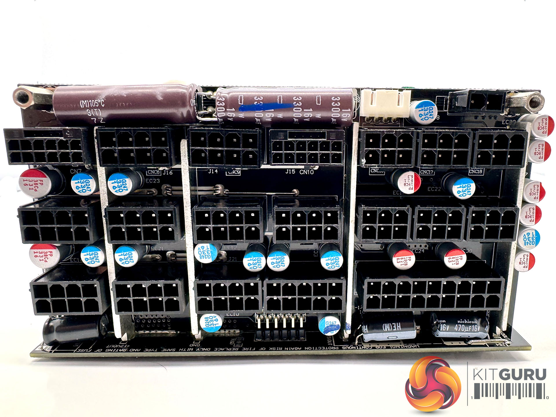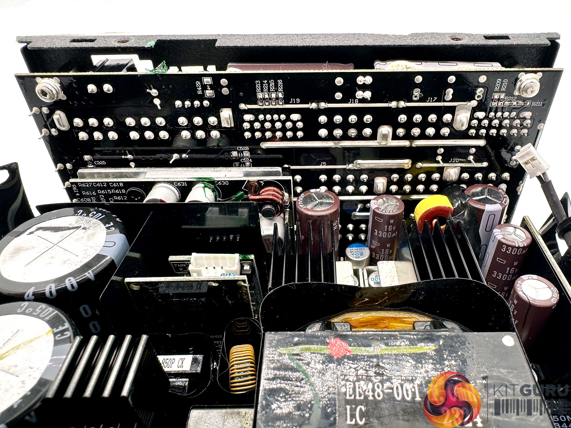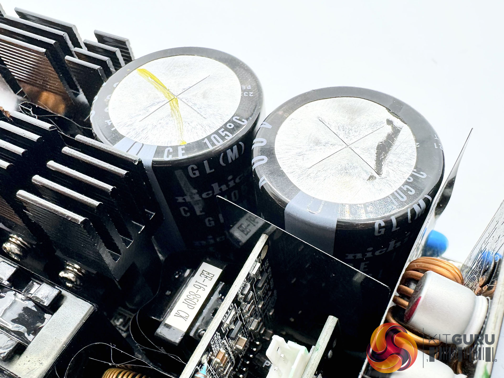 Again, we can see Enermax and SANR aren't penny pinching, as they are adopting high grade Japanese Capacitors throughout the design. A pair of Nichicon 105c rated Japanese capacitors handle the primary stage. These are rated 680uF 400V, for a total of 1360uF. Secondary stage capacitors are also high grade units we would expect to see in a power supply at this price.